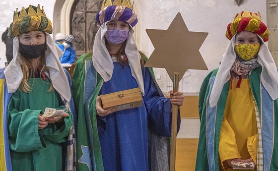 Beim Familiengottesdienst am 7.2. mit Gottesdienstleiter Stefan Dorninger trugen unsere MinistrantInnen erstmals färbige FFP2-Masken, die sie von der Pfarre geschenkt bekamen.