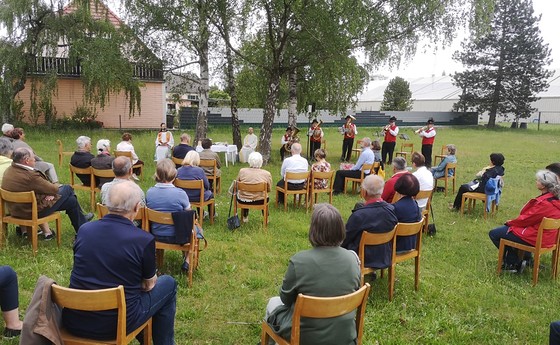 Die diesjährige Bittmesse auf unserer Pfarrwiese war der erste Gottesdienst unter freiem Himmel. Entsprechend genossen wir das Feiern in der gut spürbaren Gemeinschaft an diesem lauen Sommerabend. Ein Bläser-Quintett begleitete uns stimmungsvoll und ließ die Feier mit "Segne du Maria" würdig ausklingen.