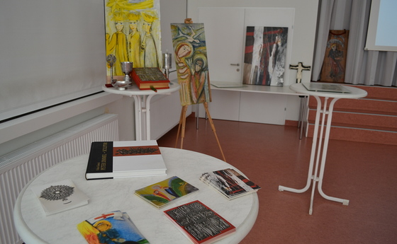 Der "Sonntag-Nachmittag bei Kaffee und Kuchen" am 8. März stand unter dem Titel "Kunst aus unserer Zeit in St. Laurenz". Dabei verwandelte sich der große Pfarrsaal in ein kleines Museum mit Werken zahlreicher Künsterlnnen, die in St. Laurenz ihre Spuren hinterlassen haben.
