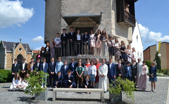 In zwei separaten Feiern empfingen am Sonntag, 22.5., 30 Kinder zum ersten Mal die heilige Kommunion. Bei strahlendem Wetter zogen sie in die Basilika ein, wurden von den Klängen der Jugendblasmusik sowie von Klavier und Gesang begleitet und freuten sich über ein wunderschönes Glaubensfest.