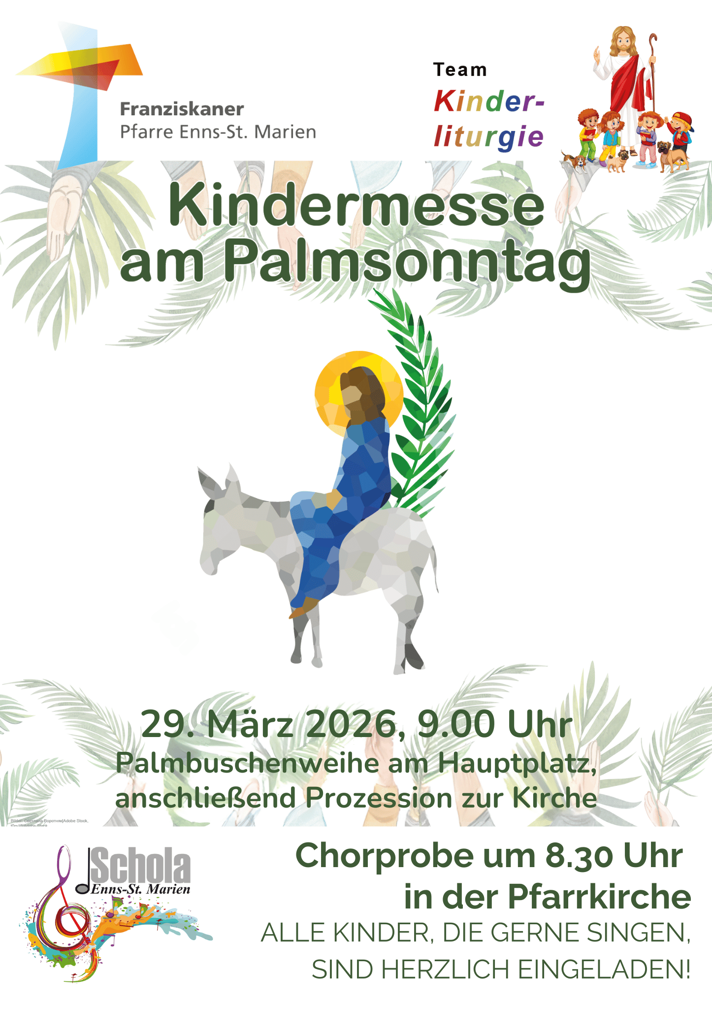 Sonntag, 29. März, 09.00 Uhr, Beginn am Hauptplatz. 8.30 Uhr Singprobe für alle Kinder!