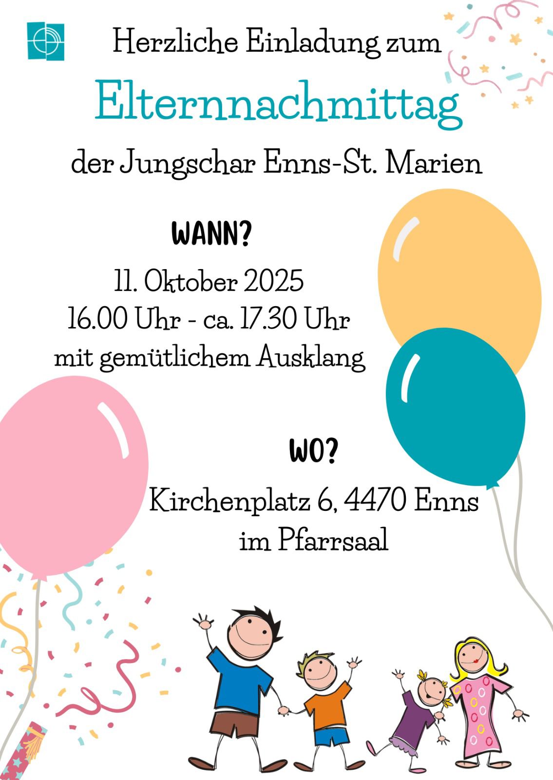 Die Jungscharstunden in Enns-St. Marien finden zirka jeden 2. Samstag von 15:00 und 17:00 Uhr im Pfarrzentrum Enns-St. Marien, Großer Gruppenraum, statt.