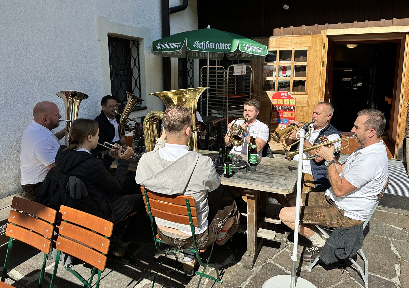 Beim gemeinsamen Mittagessen war Zeit für Austausch und Gemeinschaft. Danach nutzten einige die Gelegenheit zu einer kleinen Wanderung durch die traumhafte Berglandschaft. Bei strahlendem Sonnenschein begegnete man Kühen und einer Ziege, hörte den Gesang eines Männerchores und die Klänge unserer Musikkapelle, die auch im Gasthaus noch einmal aufspielte.