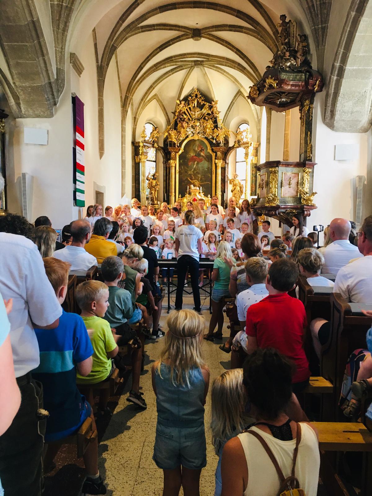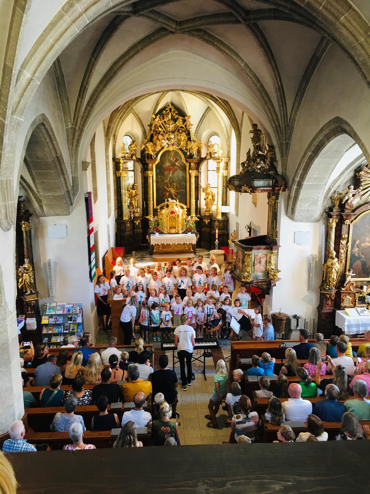 Im Anschluss an den Gottesdienst wurden zahlreiche Fahrräder vom Propst Johann Holzinger gesegnet. Die Tanzlmusi der musikfeldkirchendonau sorgte für gute Stimmung, Essen und Trinken für das leibliche Wohl. Um 11 Uhr präsentierte sich der Kinder- und Jugendchor in der vollbesetzten Pfarrkirche mit einer tollen Aufführung. Auch das Kinderschminken wurde bestens angenommen.