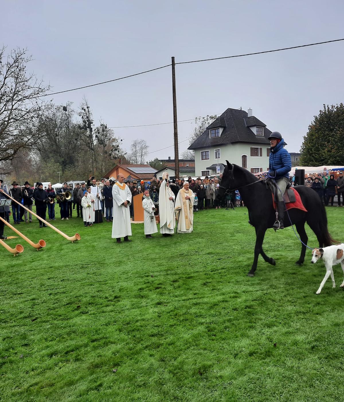 Nach der Messe fand die traditionelle Pferdesegnung auf der „Mörschinger Wiese“ statt, bei der Bischof Scheuer den anwesenden Reiterinnen und Reitern sowie ihren Pferden den Segen spendete.