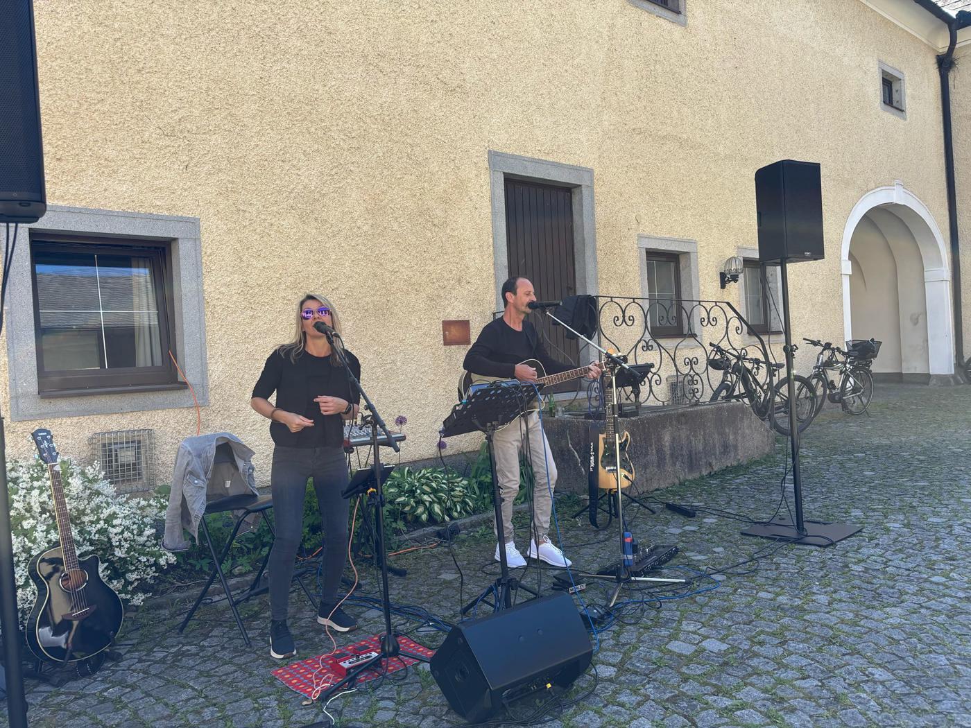 Musikalisch sorgte „Austro Mix“ by Ronny & Alexi im Innenhof für gute Stimmung. Viele Gäste verweilten bei leckeren Snacks, unterhielten sich in entspannter Atmosphäre und genossen den schönen Nachmittag.