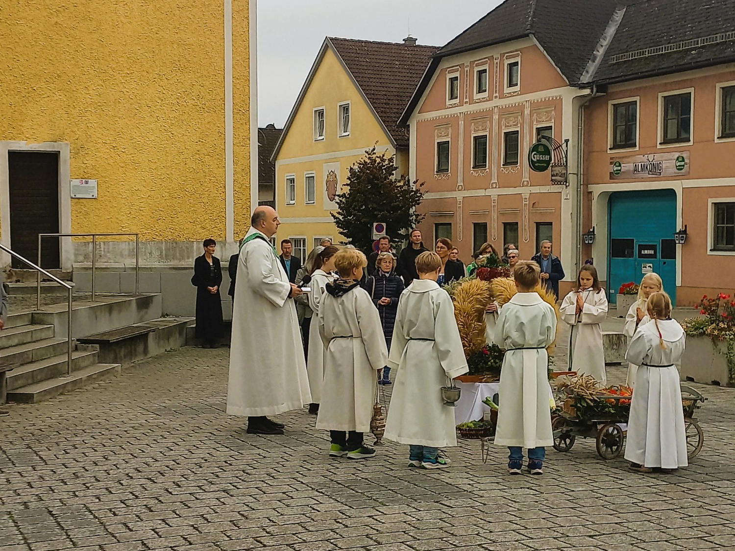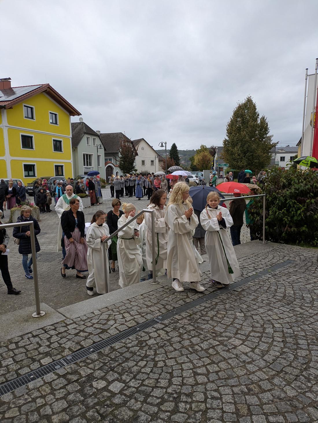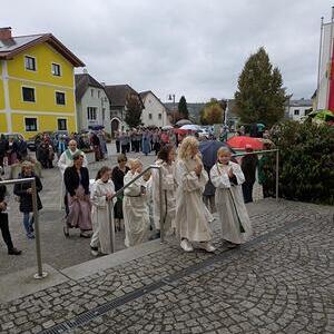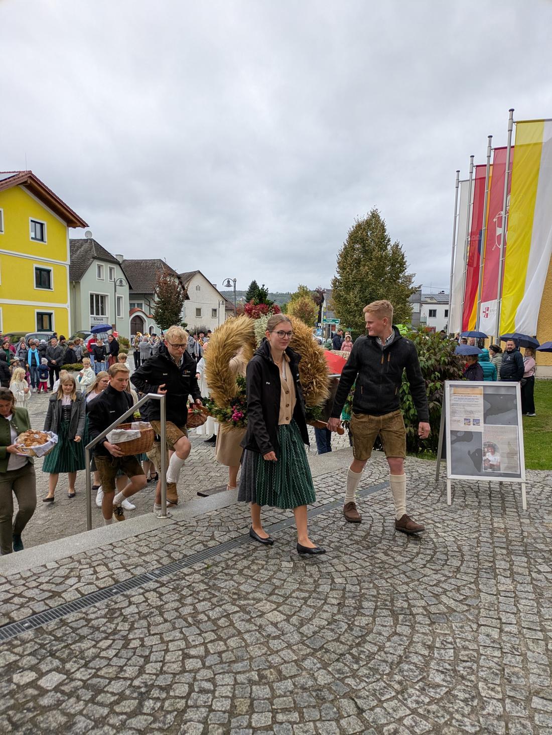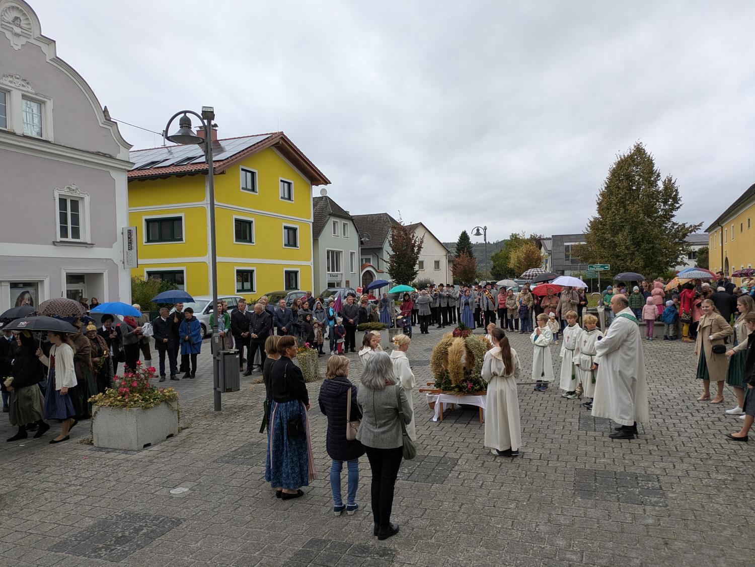 So stand auch das Erntedankfest 2025 in Feldkirchen an der Donau ganz im Zeichen von Dankbarkeit. Trotz einiger Regentropfen begann das Fest wie geplant mit der Segnung der Erntekrone am Marktplatz. Der Gottesdienst in der Pfarrkirche wurde von Mag. Thomas Hofstadler zelebriert und von Sigrid Allerstorfer inhaltlich gestaltet.