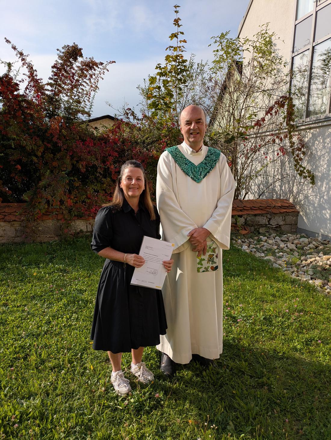 Diese Beauftragung ist zugleich die Voraussetzung für die laufende Ausbildung zur Begräbnisleiterin, die Bettina derzeit in der Diözese absolviert. Nach Abschluss im kommenden Jahr wird sie auch Begräbnisse und Trauerfeiern in unserer Pfarre leiten können.