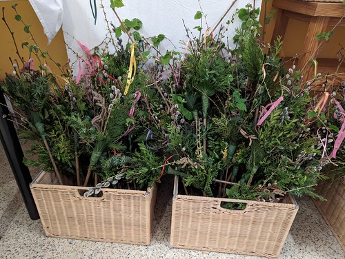 Palmbuschenverkauf durch Goldhaubengruppe