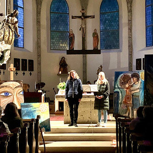 – und es war eine wunderbare Nacht in vielfacher Hinsicht: Unser Kirchenraum war erfüllt von einem Geist der Freude und Hoffnung – der förmlich eingeatmet werden konnte …. Die Combo, Bernadette Steininger mit Sarah Seiringer und Laxabo-Rete brachten die Herzen zum Schwingen…. Draußen im Pfarrheim sorgten das Kaffee-Stüberl und Kunst im Kaffee für das leibliche Wohl – der Klim-Bim-Markt für eine kleine Einkaufsfreude….