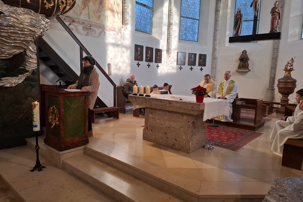 Bereits in der Pfarrkirche berichtete Traudi Mattes über die Entstehung von KunstimKaffee. Ihr Dank richtete