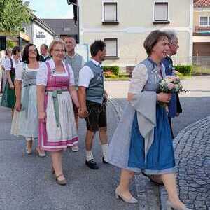 Am Sonntag den 6. Juli feierte die Pfarrgemeinde gemeinsam mit der Goldhaubengruppe den 33. Trachtensonntag. Die Trachtenmusikkapelle begleitete die geladenen Jubelpaare zur Kirche und beim gemeinsamen Gottesdienst mit der Pfarrgemeinde, erneuerten die Jubelpaare (5 x Silber-, 5 x Golden-, 2 x Diamanten- und 1x Eiserne Hochzeit) ihre Eheversprechen. Anschließend an die Hl. Messe begleitete die Musikkapelle die Jubelpaare zum Gasthof Lohninger, wo sie von den Goldhaubenfrauen zu Kaffee und Kuchen eingeladen wurden.