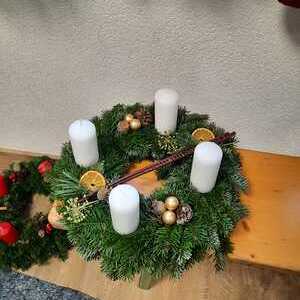 Außerdem lud die Katholische Frauenbewegung an diesem Wochenende zum jährlichen Adventmarkt ein. Schon am Mittwoch davor hatten viele helfende Hände wieder sehr schöne Adventkränze gebunden. Außerdem konnten sich alle Besucherinnen und Besucher über leckere selbstgebackene Kuchen und Kekse freuen.