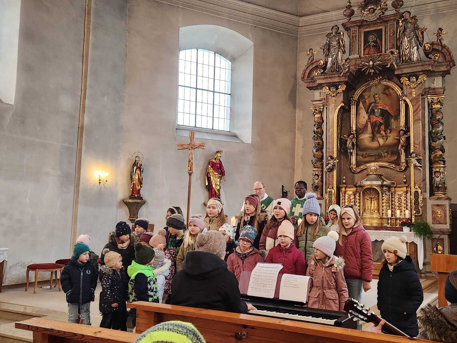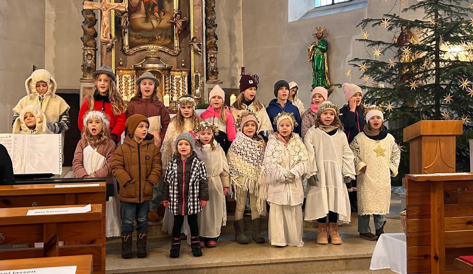 Dürfen wir uns vorstellen - wir sind der Fornacher Kinderchor (FKC) - eine fröhliche, kunterbunte, coole Kinderschar von klein bis groß. Wir proben immer mittwochs von 17 bis 18 Uhr im Pfarrheim - da wird gesungen, musiziert, getanzt - der Spaß kommt auf jeden Fall nicht zu kurz.