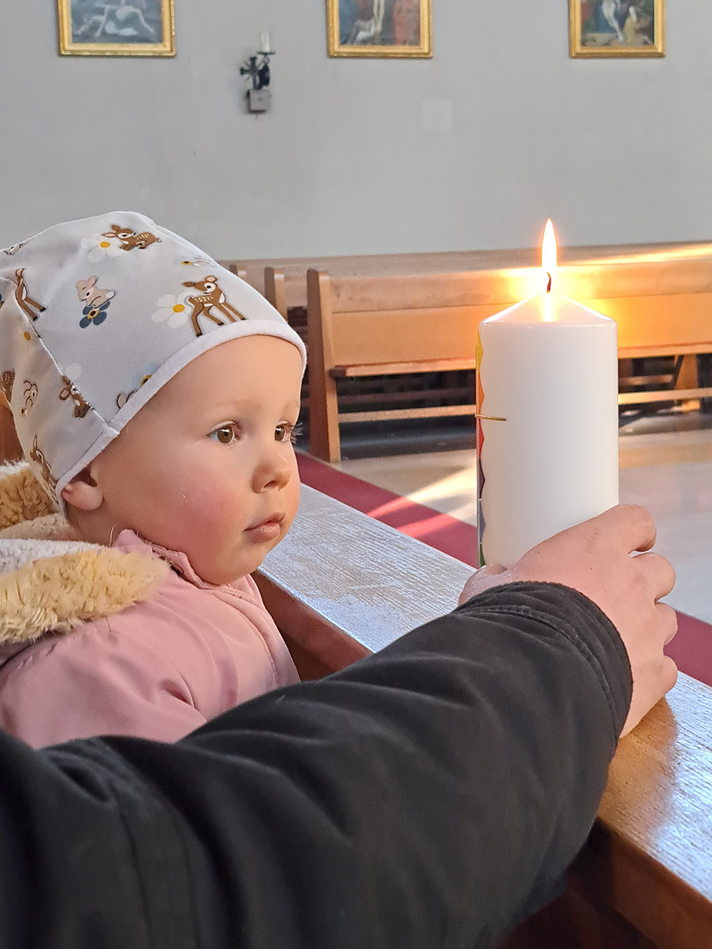 18 der insgesamt 27 Täuflings-Familien nahmen die Einladung an und freuten sich über die Segnung ihrer kleinen Lieblinge und über die selbst gemachten Kerzen mit dem Namen ihres Kindes.