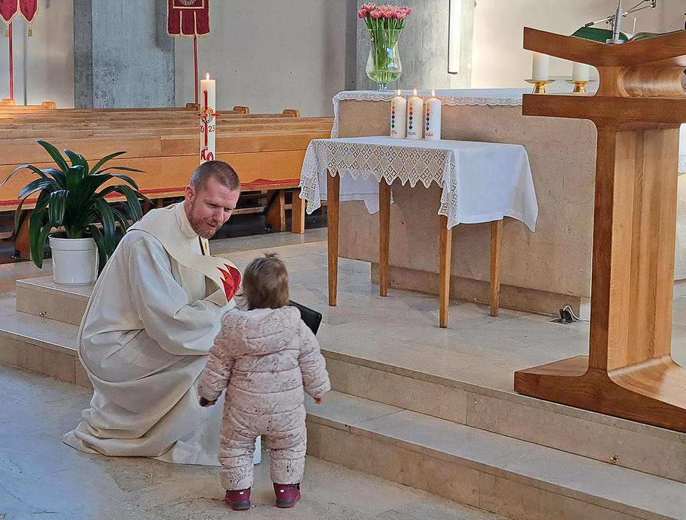 Besonders hinreißend waren jene Täuflinge, die Pfarrer Christoph im Altarraum „besuchten“.