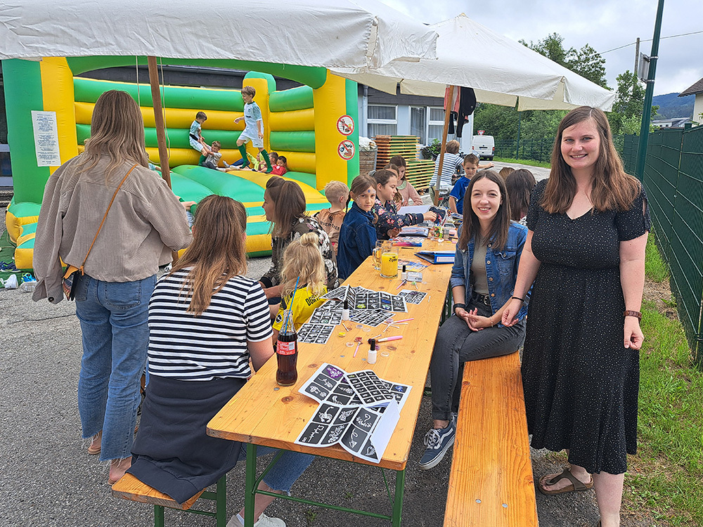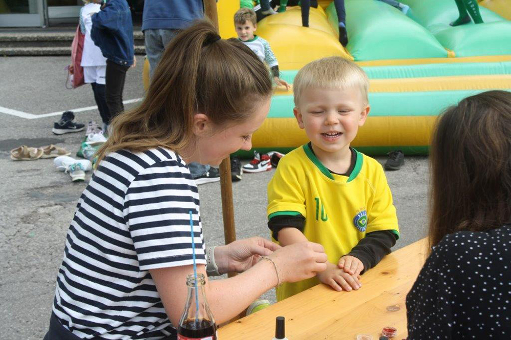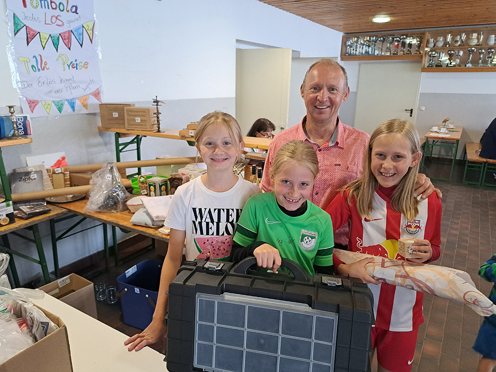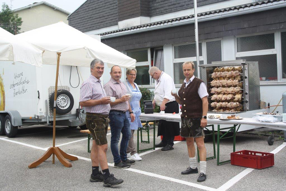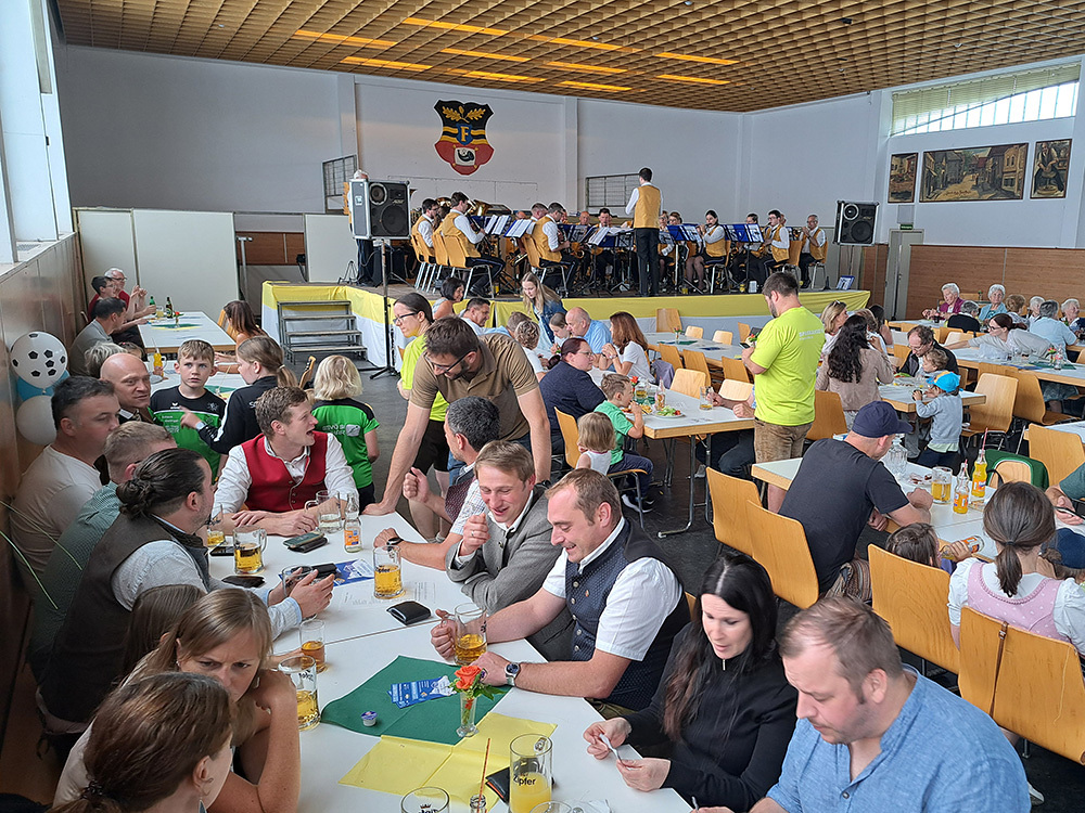 Dort wurde dank der perfekten Organisation von Festobmann Hans Scheibl und seinen rund 100 (!) ehrenamtlichen Helfern für alle etwas geboten: Hüpfburg, Tombola, Kinderschminken, Tattoos, Eis und Luftballonsteigen für die Kinder - gutes Essen und Trinken, leckere Kuchen, Bauernkrapfen und musikalische Unterhaltung durch die Marktmusikkapelle für die Erwachsenen.