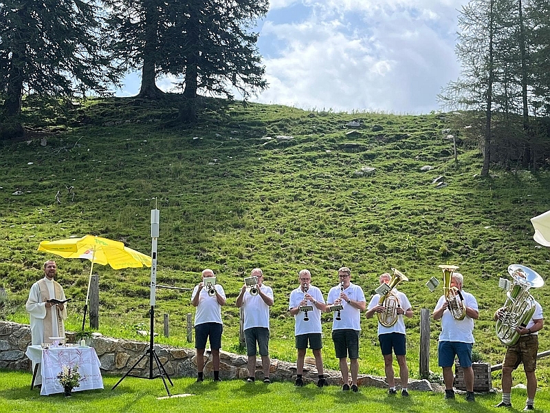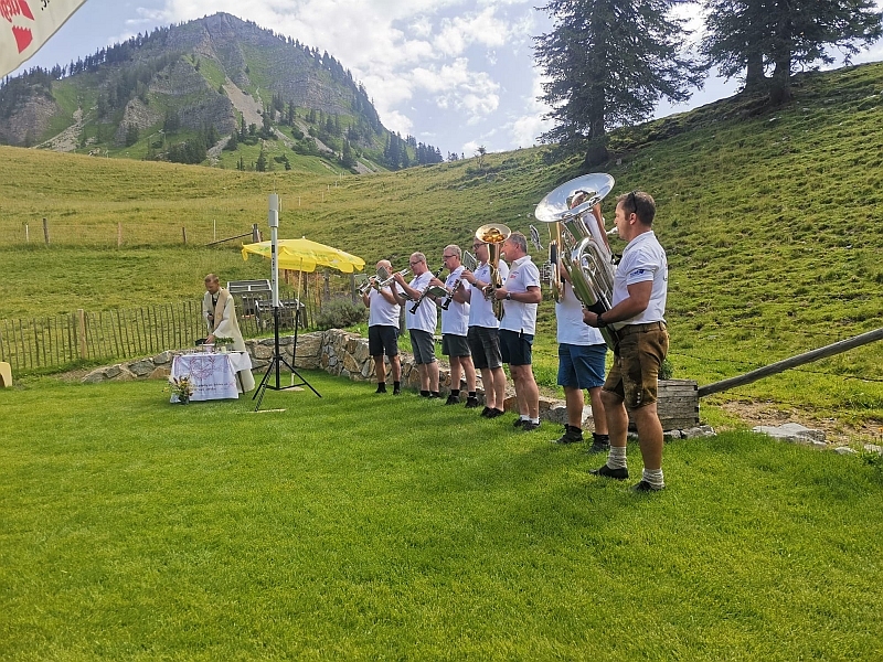 30. Juni 2024 - Etwas schweißtreibend war der Aufstieg zur Genneralm, war das Wetter doch sehr schwül, aber es hat sich gelohnt. Der Himmel zeigte sich am Vormittag noch von seiner schönen Seite und so stand der Bergmesse, organisiert von den Naturfreunden Frankenburg, nichts mehr im Wege. Musikalisch umrahmt wurde der Gottesdienst von einer Abordnung der Marktmusikkapelle, die auch nach der Messe die zahlreichen Besucher noch beim gemütlichen Beisammensein unterhielt. Oben am Berg und unter Gottes freiem Himmel ist man dem Schöpfer all dieser schönen Dinge doch ein bisschen näher.
