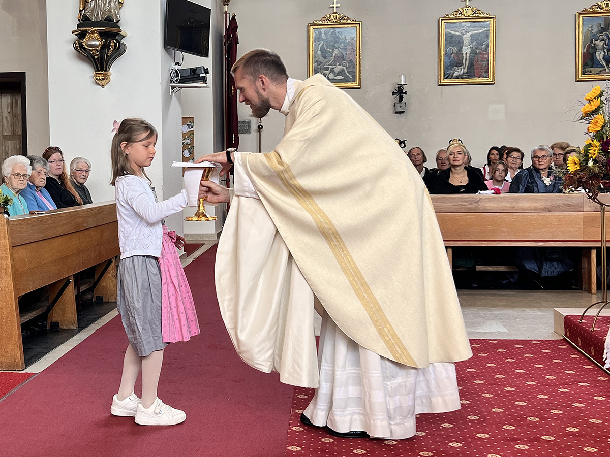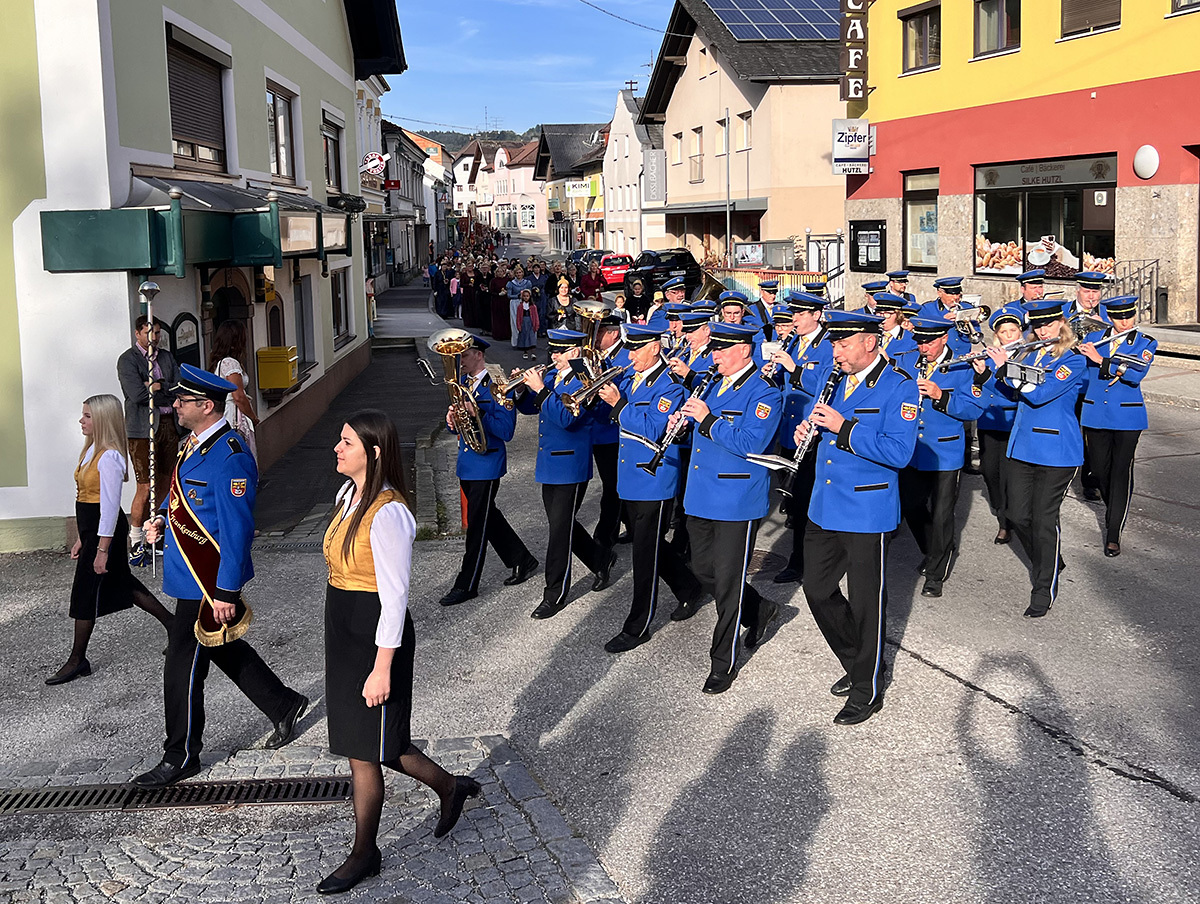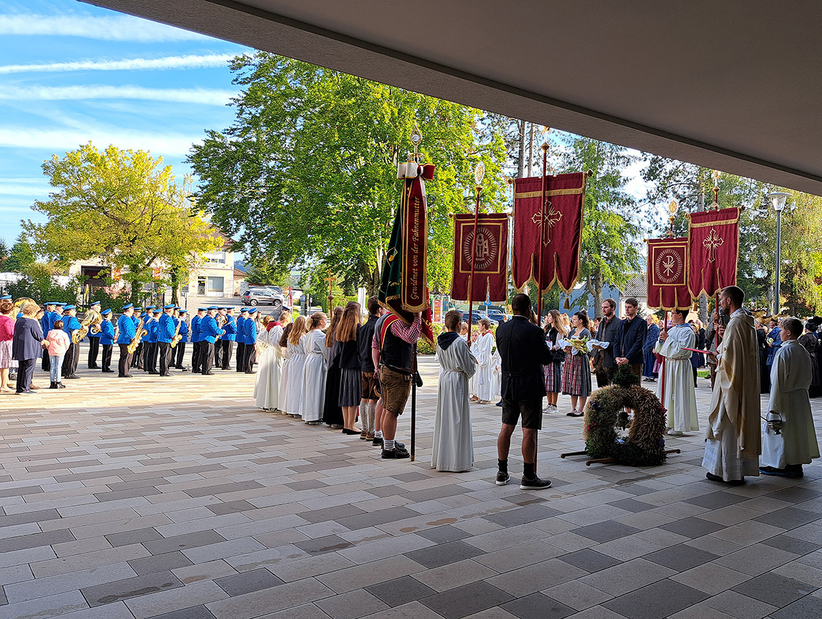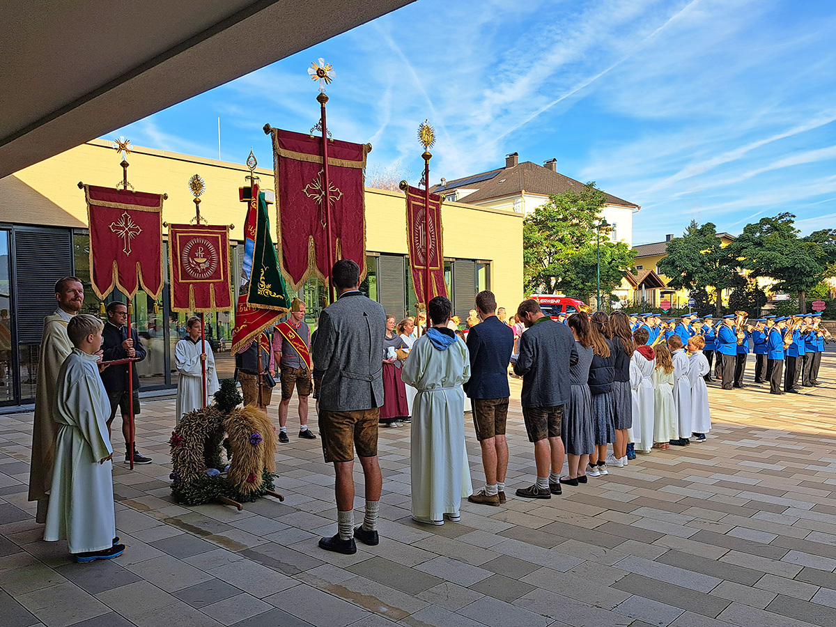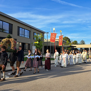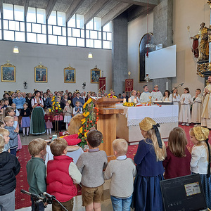 22.09.2024 - Angeführt von der wunderschön gebundenen Erntekrone der Landjugend und begleitet von der Marktmusikkapelle konnten wir beim Erntedankfest feierlich vom Schulzentrum in die Kirche einziehen. Auch der Kinderliturgiekreis, der Kirchenchor und die Goldhauben schlossen sich in großer Zahl an.