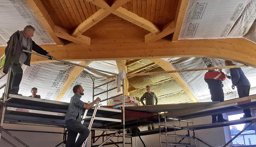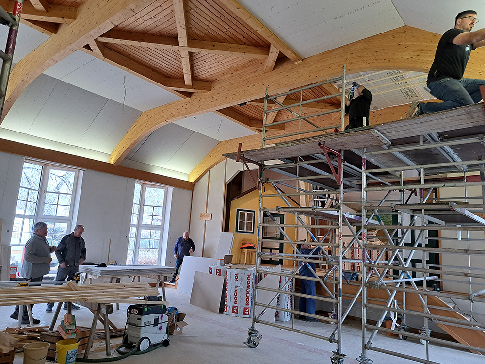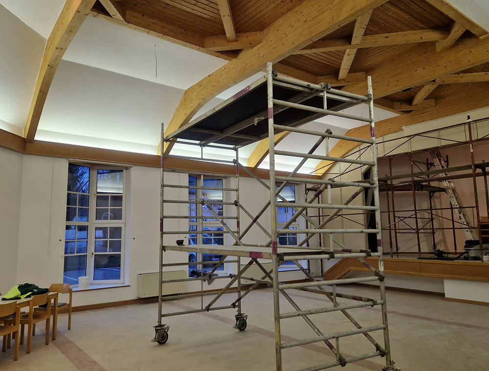 Am Dreifaltigkeitssonntag, dem 25. Mai 1986, wurde das neue Pfarrzentrum vom damaligen Diözesanbischof Maximilian Aichern gesegnet und seiner Bestimmung übergeben. Seither wurde unser Pfarrsaal intensiv von den unterschiedlichen Gruppen genutzt und viele Feste konnten dort ausgerichtet werden. Nach fast 40 Jahren ist es nun an der Zeit, ein paar Renovierungsarbeiten durchzuführen. Die unzureichende Wärmeisolierung hin zum Dach wird komplett erneuert. Die sehr mangelhafte Beleuchtung im Saal und auf der Bühne wird auf energiesparende LED-Technik umgestellt und der Boden, der die letzten Jahrzehnte einen wirklich guten Dienst geleistet hat, wird neu verlegt. Wir freuen uns, wenn wir in den sanierten Pfarrsaal wieder zu den diversen Veranstaltungen einladen können. Ein Dank gilt an dieser Stelle unserem Pfarrgemeinderatsobmann Herrn Norbert Huemer für die Bauleitung, den unzähligen Helfern und Frau Rosa Aschenberger, die sich mit vielen fleißigen Helferinnen um das leibliche Wohl gesorgt hat.