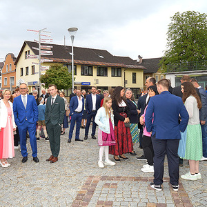 Für 40 Frankenburger und 8 Firmkandidat:innen von anderen Pfarren begann der Firmtag voll Freude und Erwartung mit der Aufstellung auf dem Marktplatz. Eingestimmt und begleitet beim Einzug in die Kirche wurden sie von der Marktmusikkapelle.
