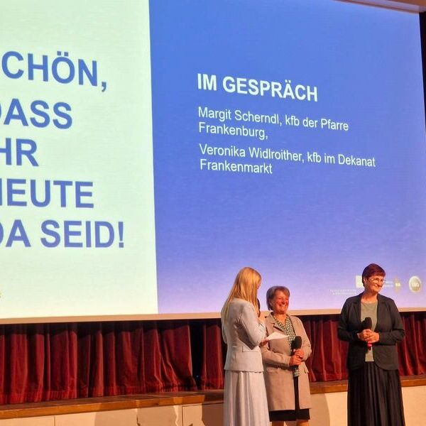 Unter dem Motto „Offen für dich, Gott und die Welt“ gab es nach einem herzlichen Empfang ein interessantes Programm mit kurzen Talk-Runden, warmherzig moderiert von Sabine Kronberger. Die stellvertretende Vorsitzende Karin Limberger, Frauen aus dem Diözesanteam und nicht zuletzt Margit Scherndl plauderten unter anderem über ihr persönliches Kennenlernen der KFB.