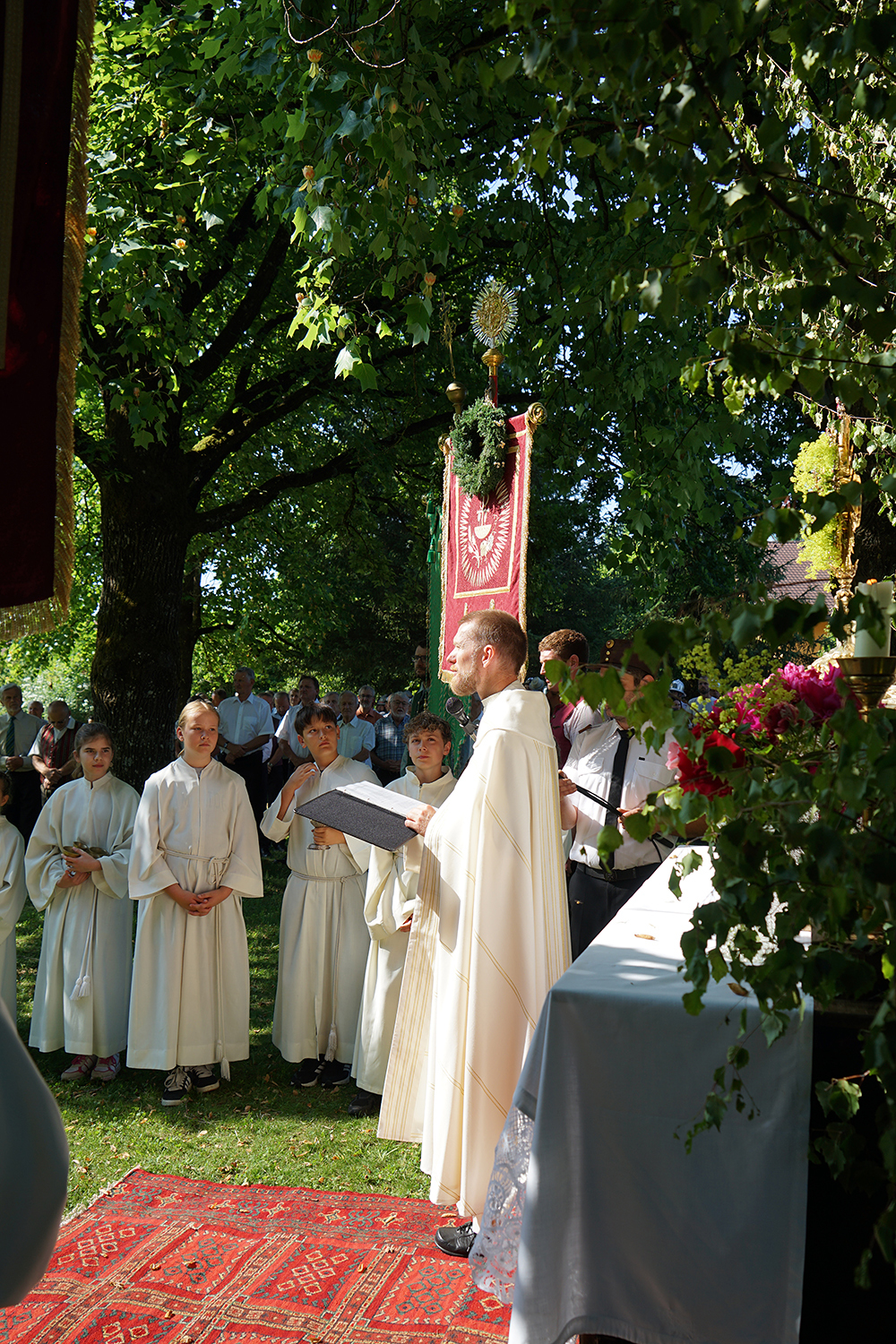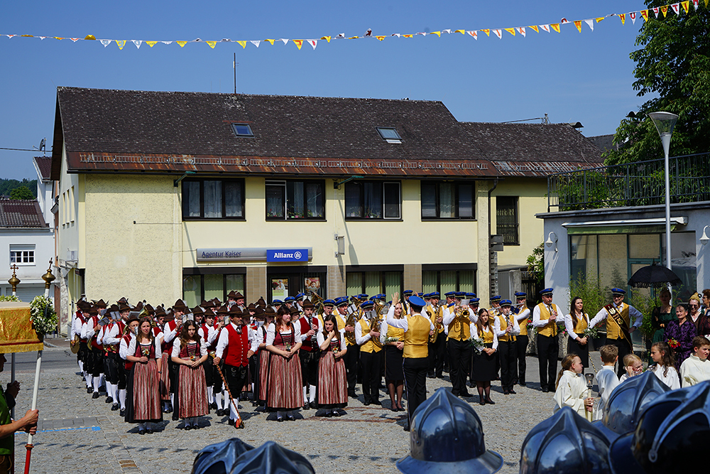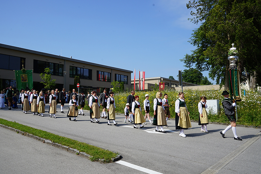 Bei strahlendem Wetter konnten wir heuer eine schöne Prozession von der Kirche über den Altenheimpark zur Schule und abschließend zum Altar am Marktplatz abhalten.