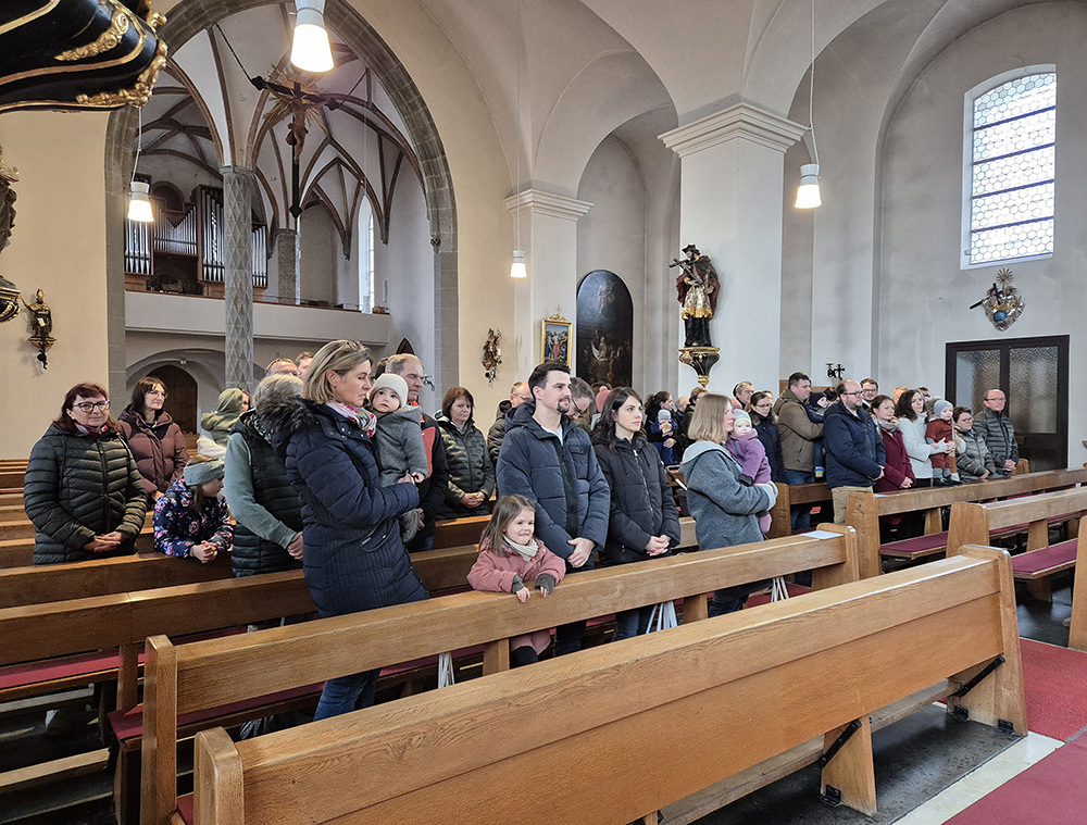 Von den neunzehn im Jahr 2026 in Frankenburg getauften Kindern nahmen dreizehn Familien die Einladung an und kamen zusammen, um sich noch einmal gemeinsam dem Wunder der Geburt ihres Kindes und der damit verbundenen Freude, aber auch Verantwortung bewusst zu werden.