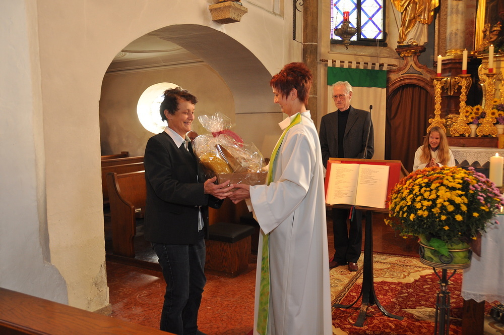 Im Rahmen eines Gottesdienstes gratulierten mit den besten Glückwünschen ganz herzlich unsere Pfarrasistentin Sabina Eder und PGR-Obmann Dr. Hans Edelmann unserer langjährigen und treuen Organistin Gerti Ramböck zum 60. Geburtstag.