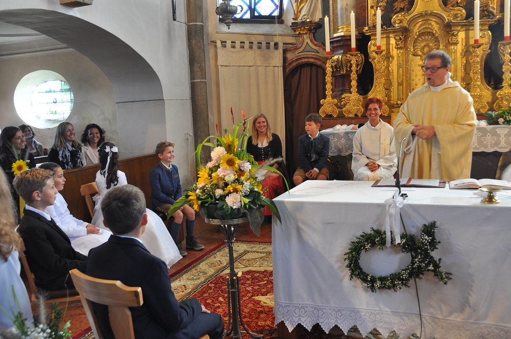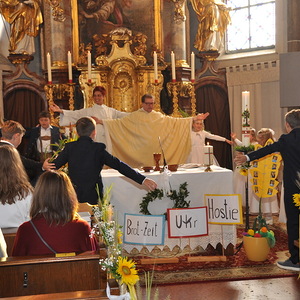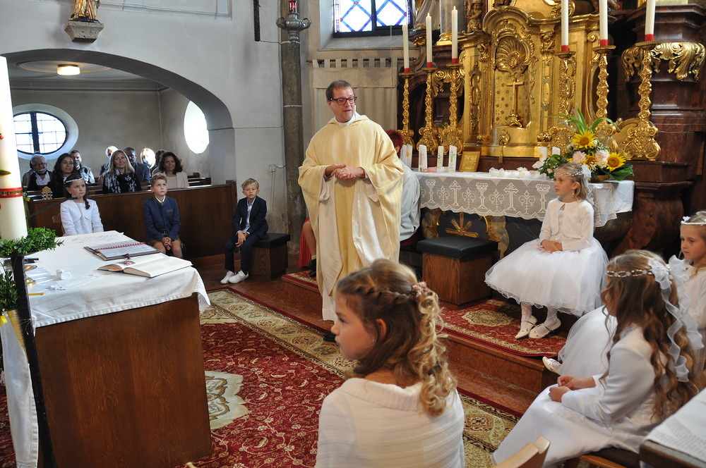Gott sei Dank, wir hatten eine wunderschöne, bestens organisierte Erstkommunion Festmesse in Form einer Familienmesse.