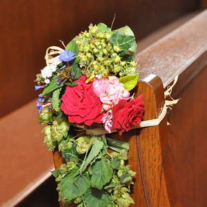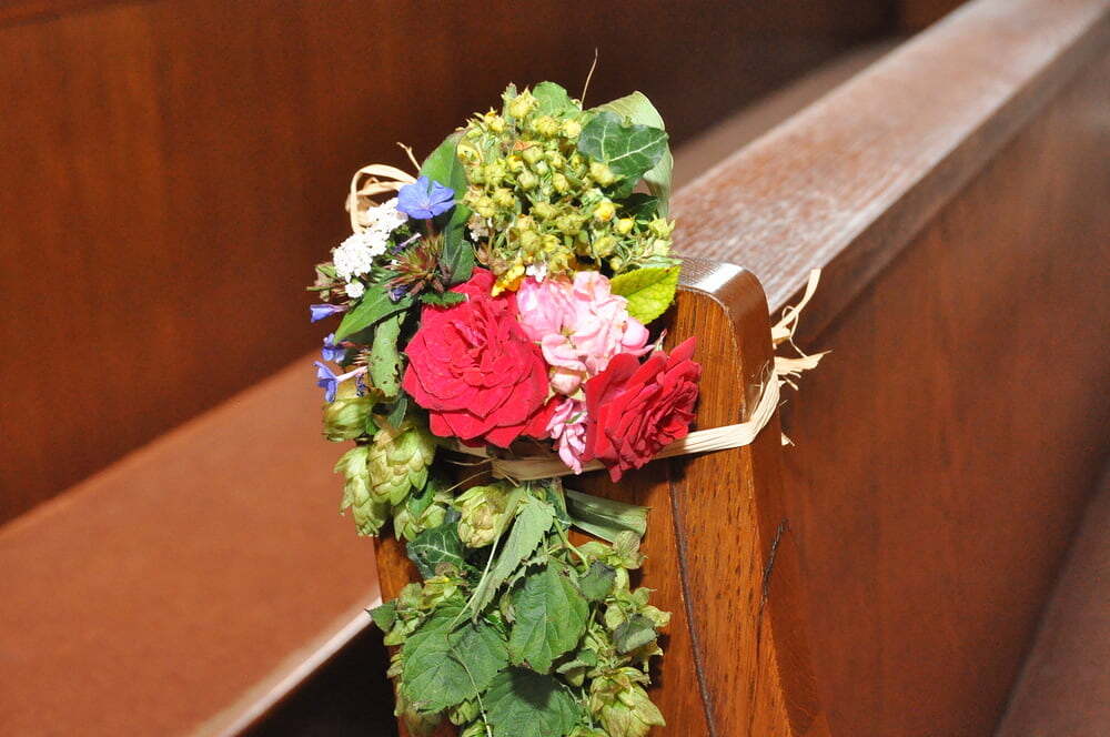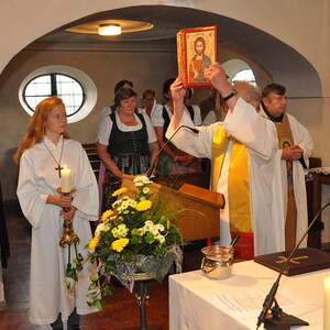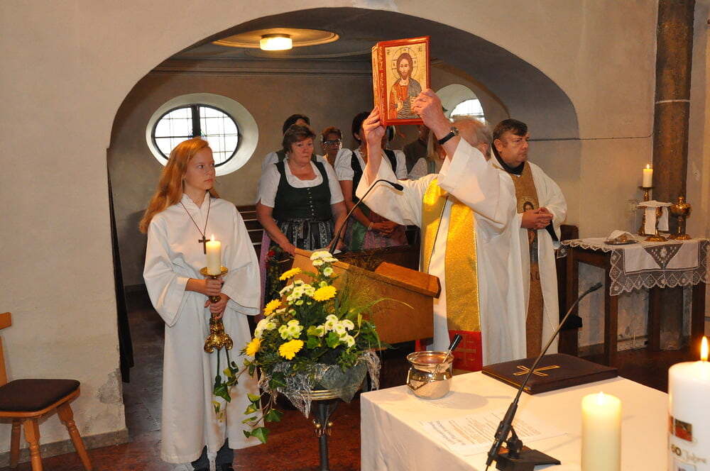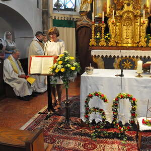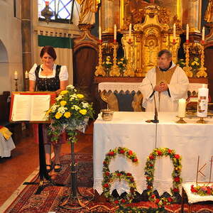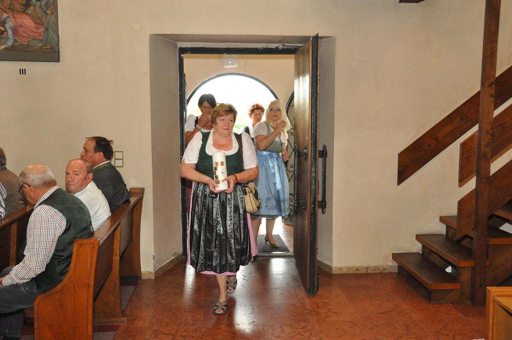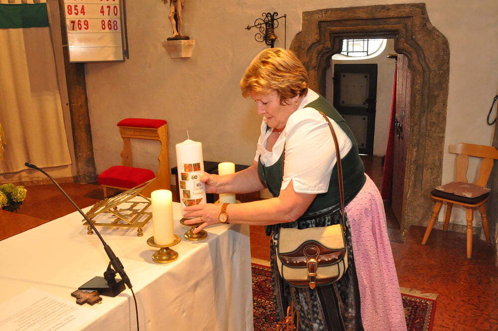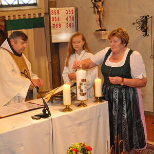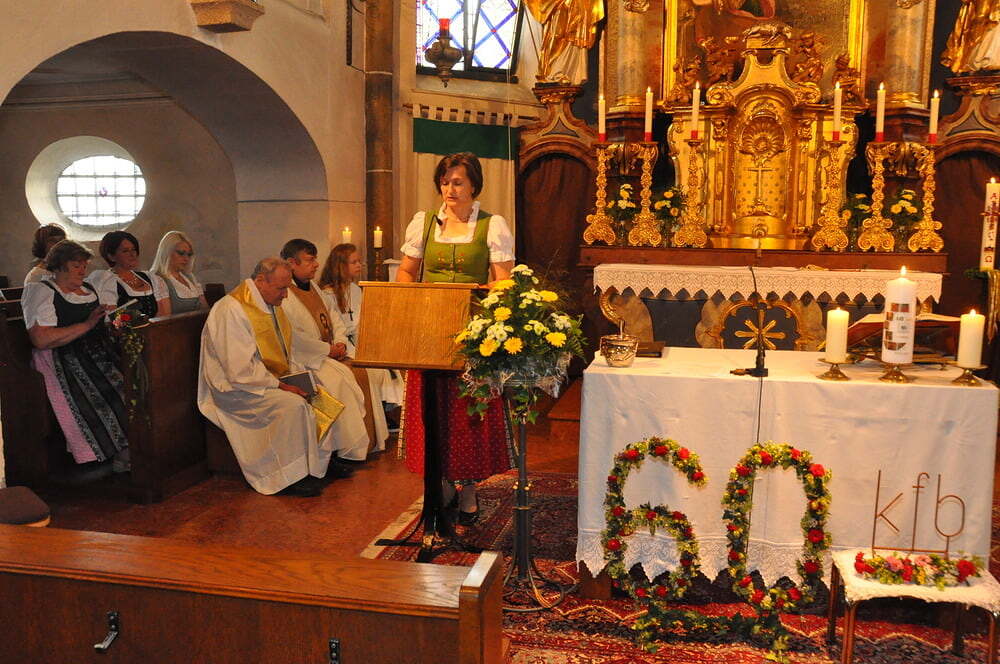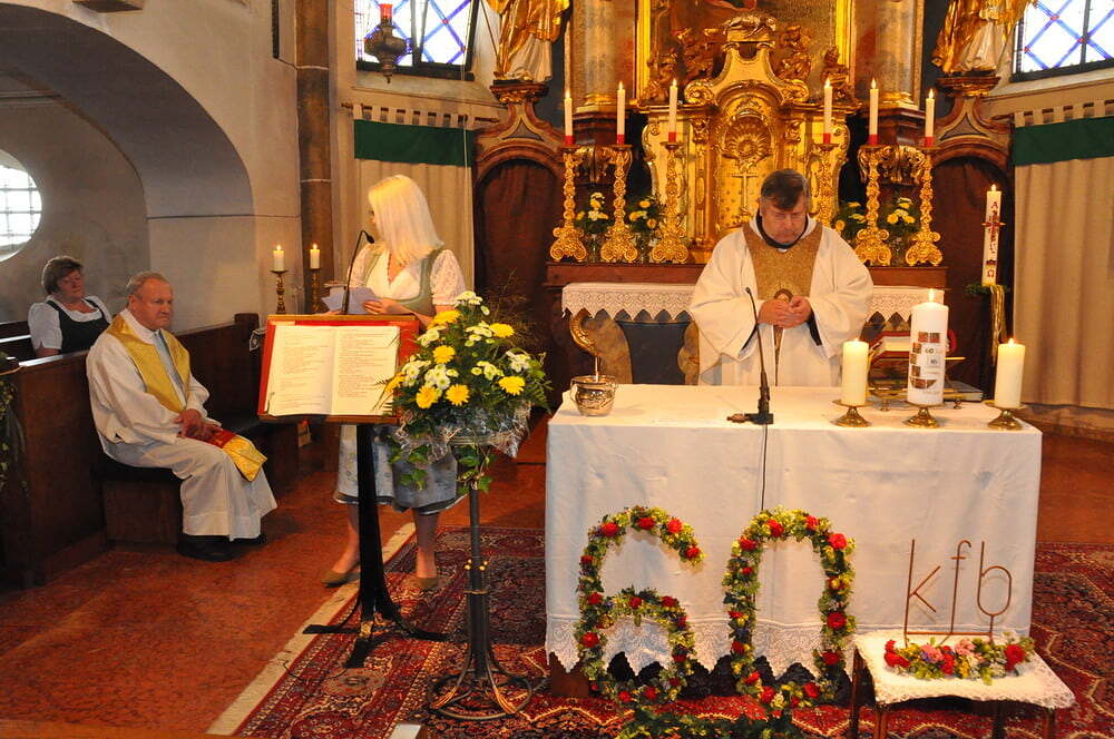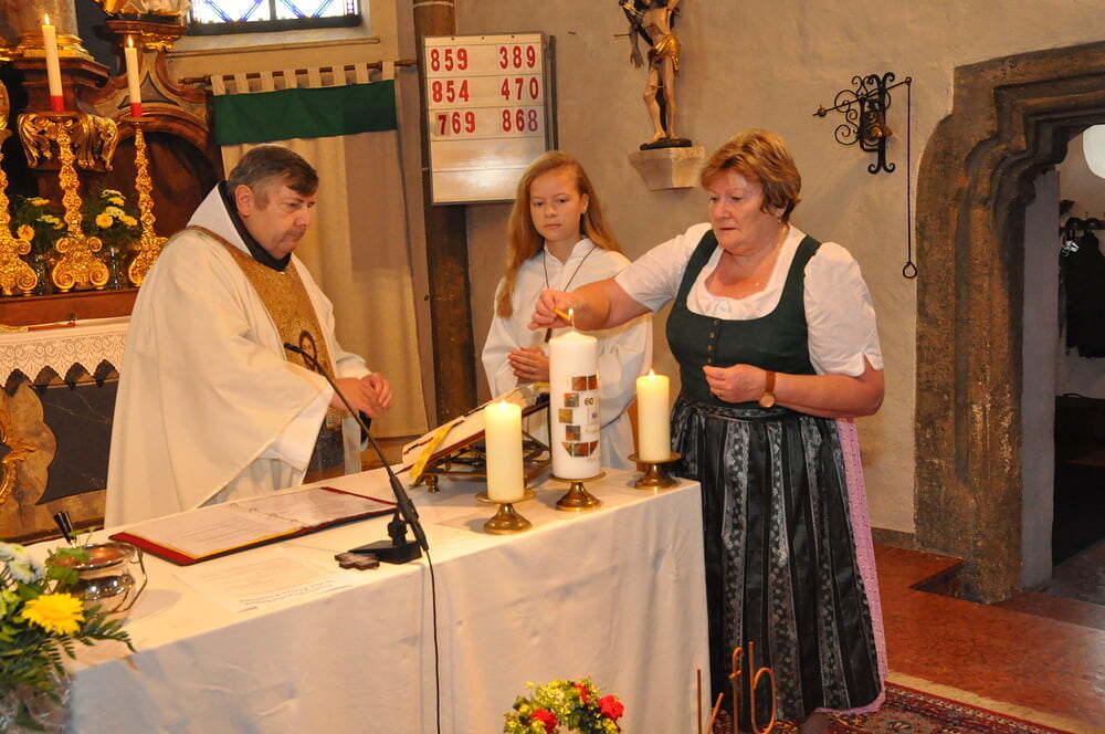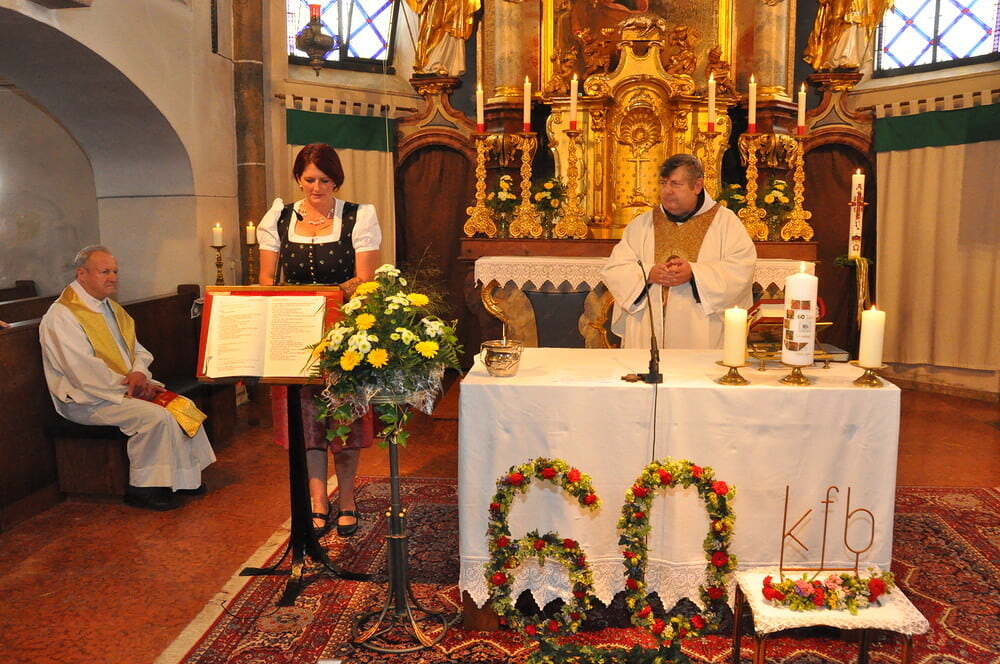 Unserer Kfb-Frauen, begleitet von Gästen aus den Nachbarpfarren und mit der Jubiläumskerze vorann zogen zum Gottesdienst in die festlich geschmückte Kirche ein.