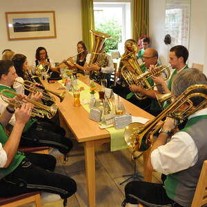Der anschließende Frühschoppen im Gasthaus Mayr, mit Ansprachen, Fotos aus vergangenen Zeiten und der Blasmusik fand bei bester Stimmung statt.