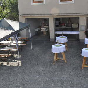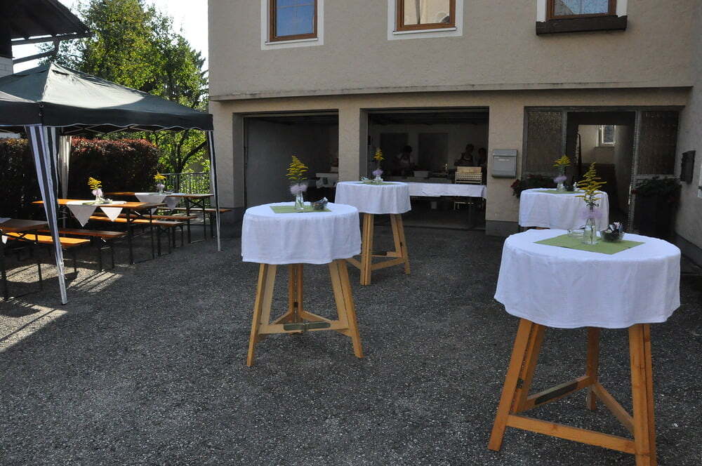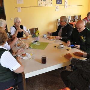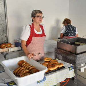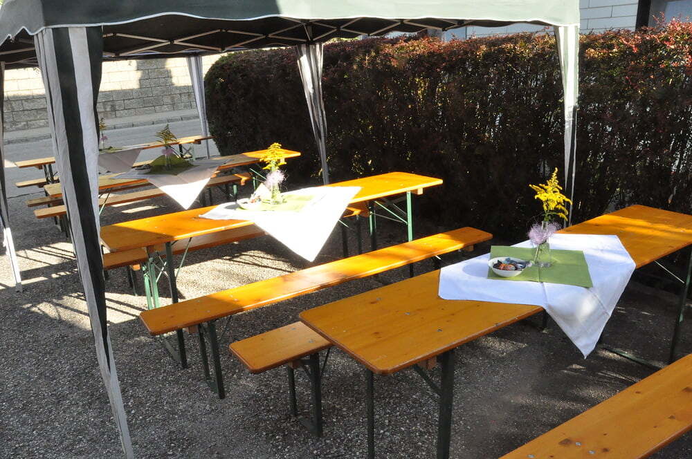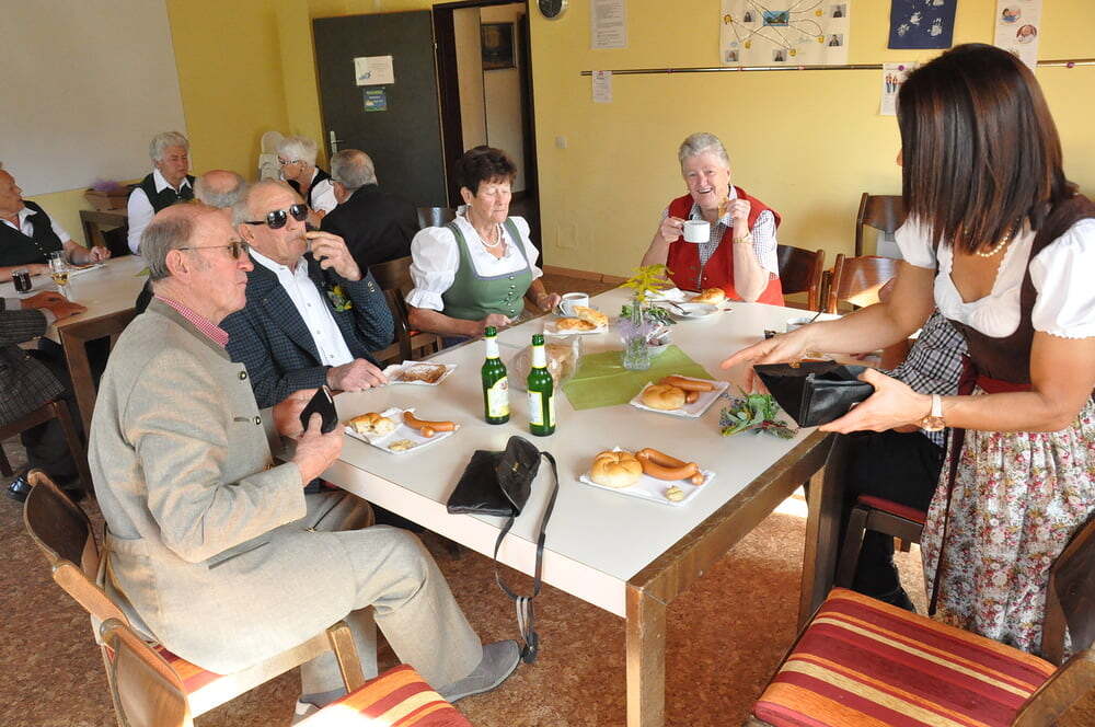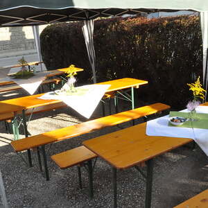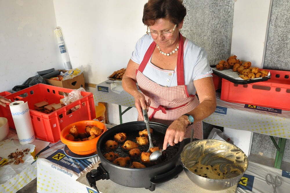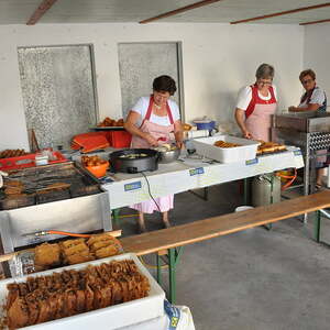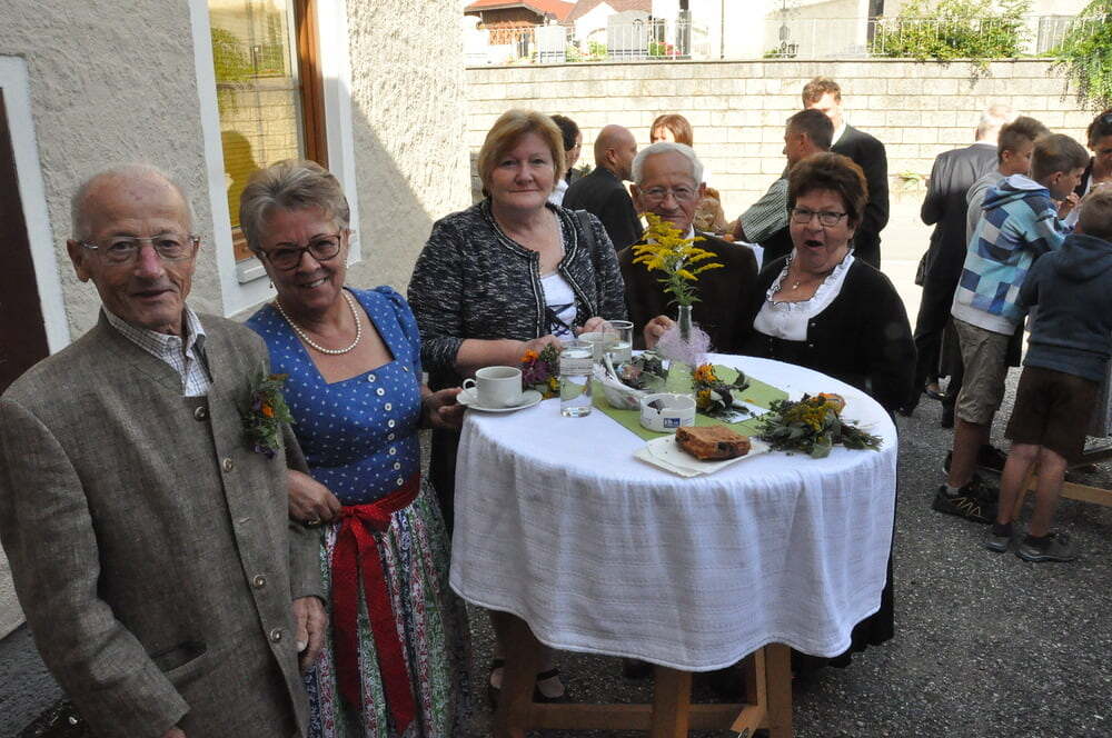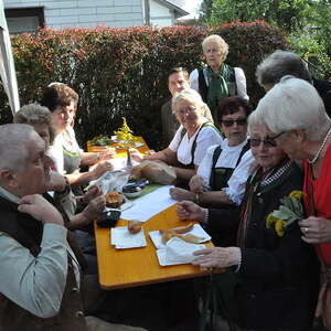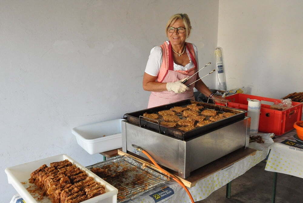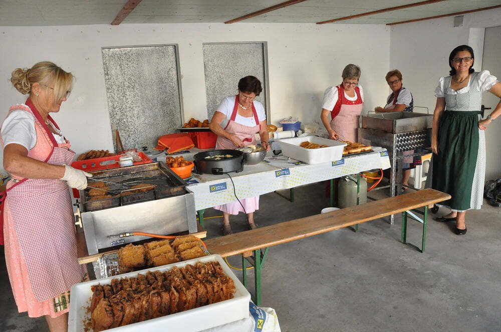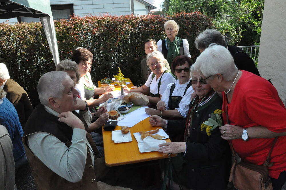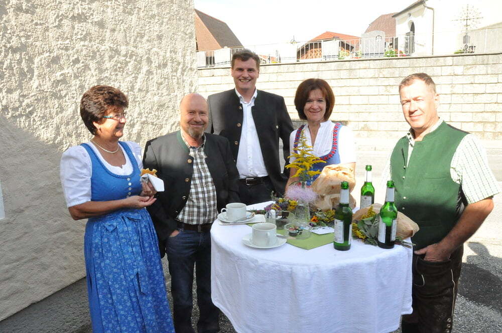 Die Körbe mit den Kräutersträußchen wurden von den Goldhaubenfrauen angefertigt, die auch den Frühschoppen vor dem Pfarrheim durchführten. Köstliches Schmalzgebäck, Würstchen und Getränke wurden ebenfalls von unserer Goldhaubengruppe angeboten.