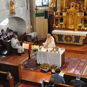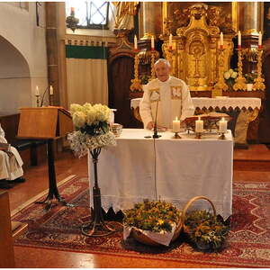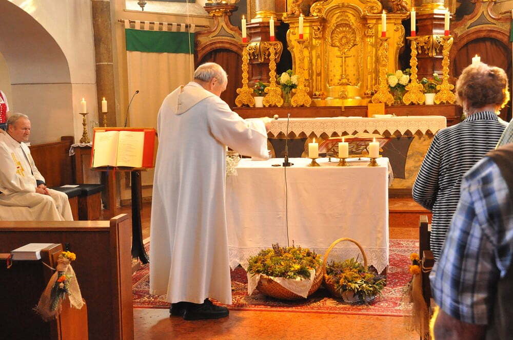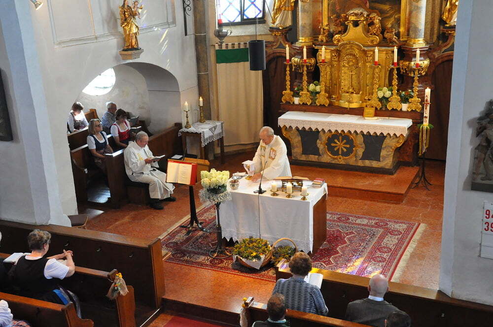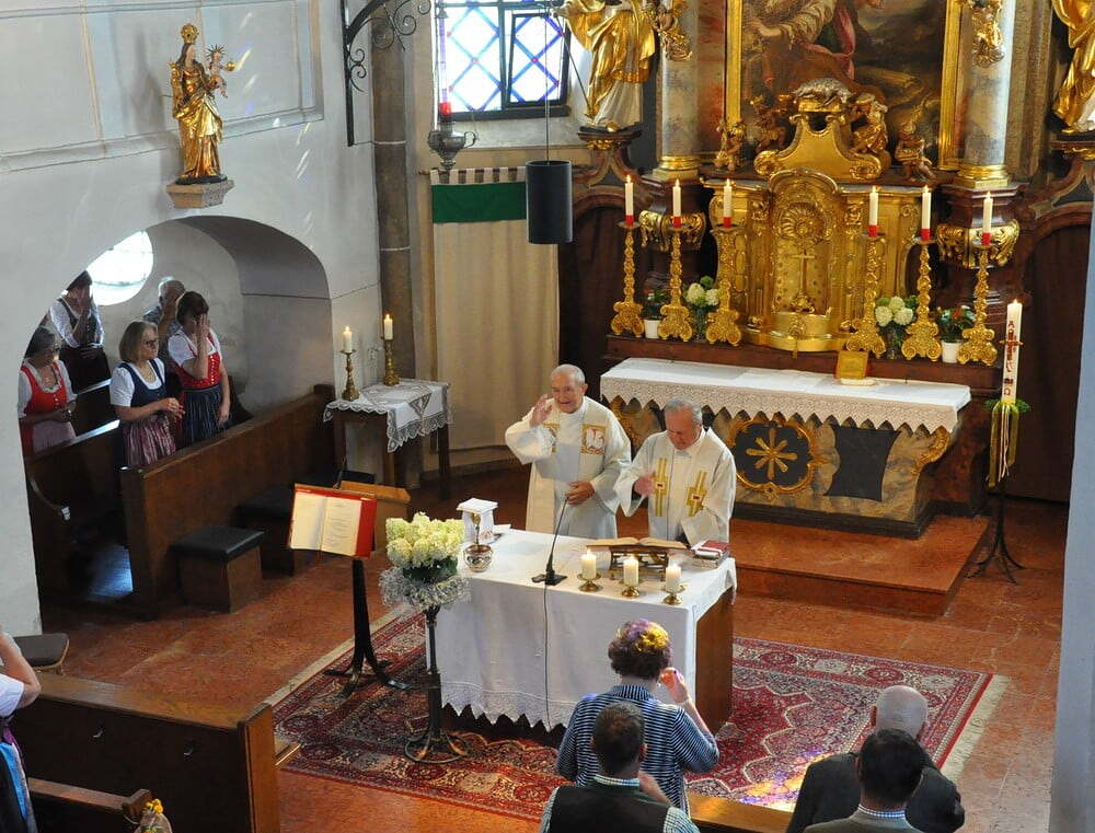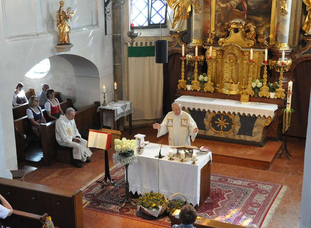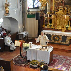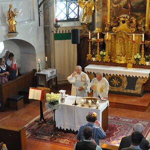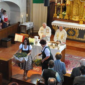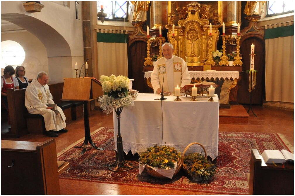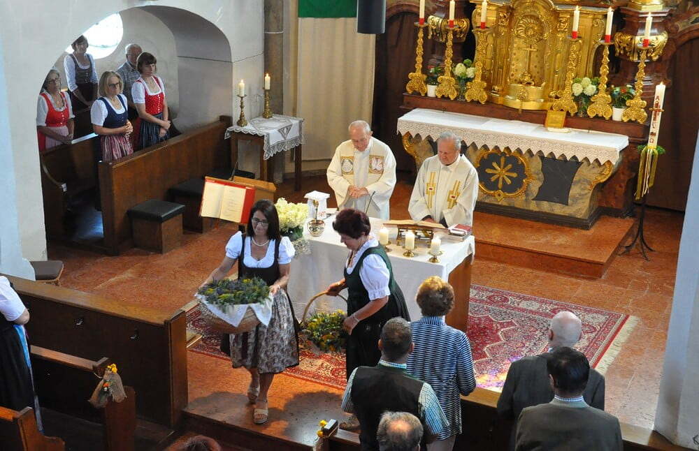 Pfarrer Oberndorfer und Pfarrer Detzlhofer zelebrierten in Vertretung unseres Pfarrers Pater Georg OFM die Hochfestmesse mit Kräutersegnung.