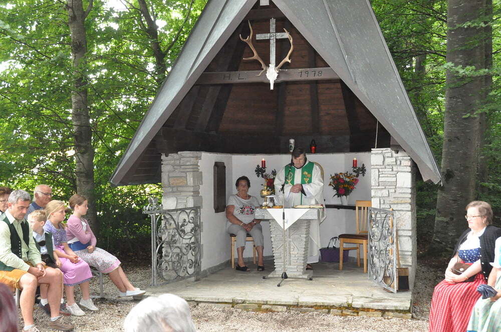 Diese Jahr spielte das Wetter mit und es konnte die traditionelle Waldmesse in der Hubertuskapelle von Franking gefeiert werden. Die stimmungsvolle Messe wurde von den Weilharter Jagdhornbläser aus Hochburg/Ach begleitet.