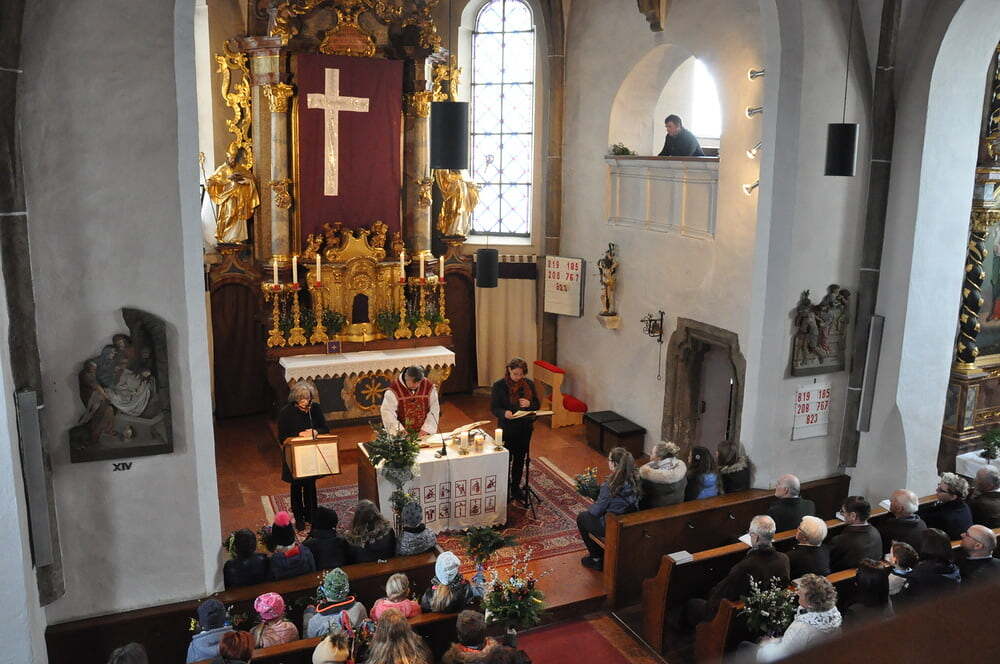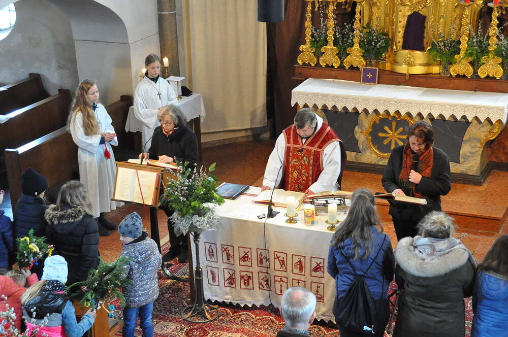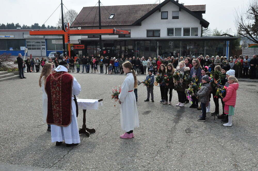 Palmweihe am Dorfplatz, Einzug in die Kirche zur Hl. Messe