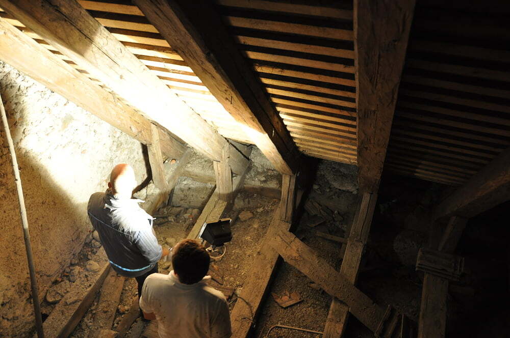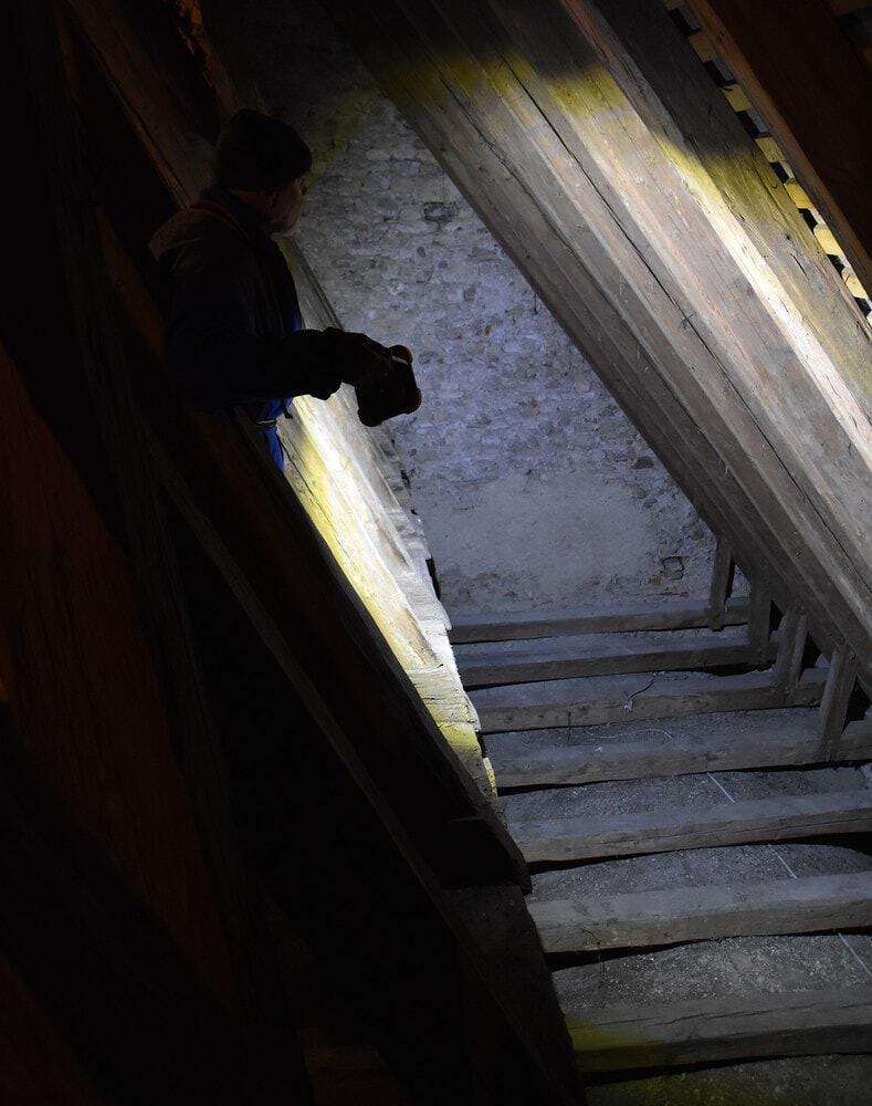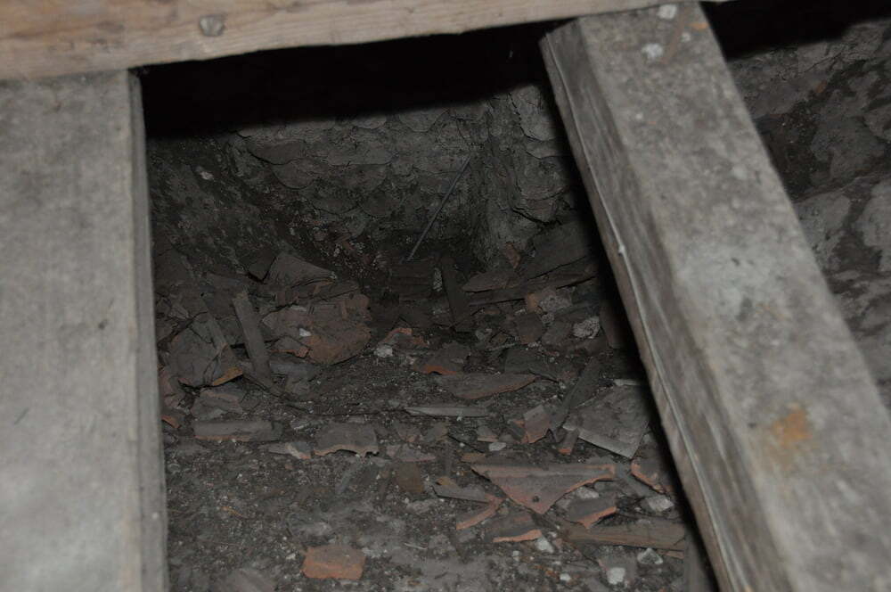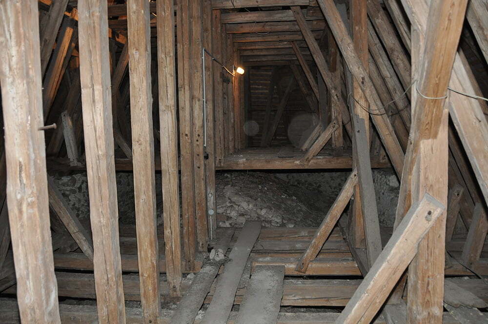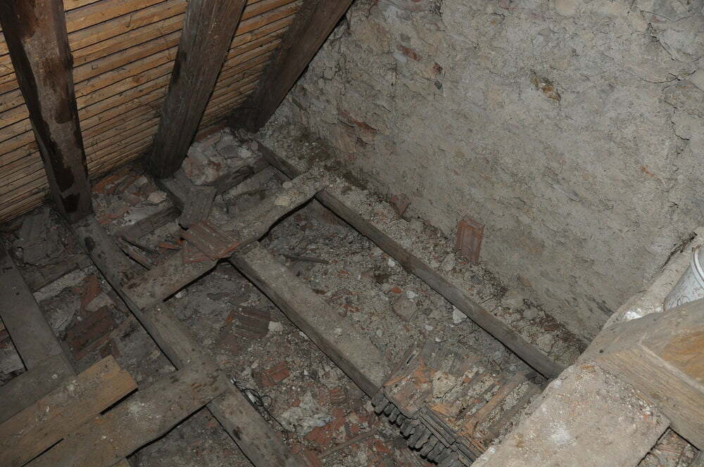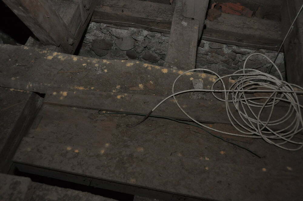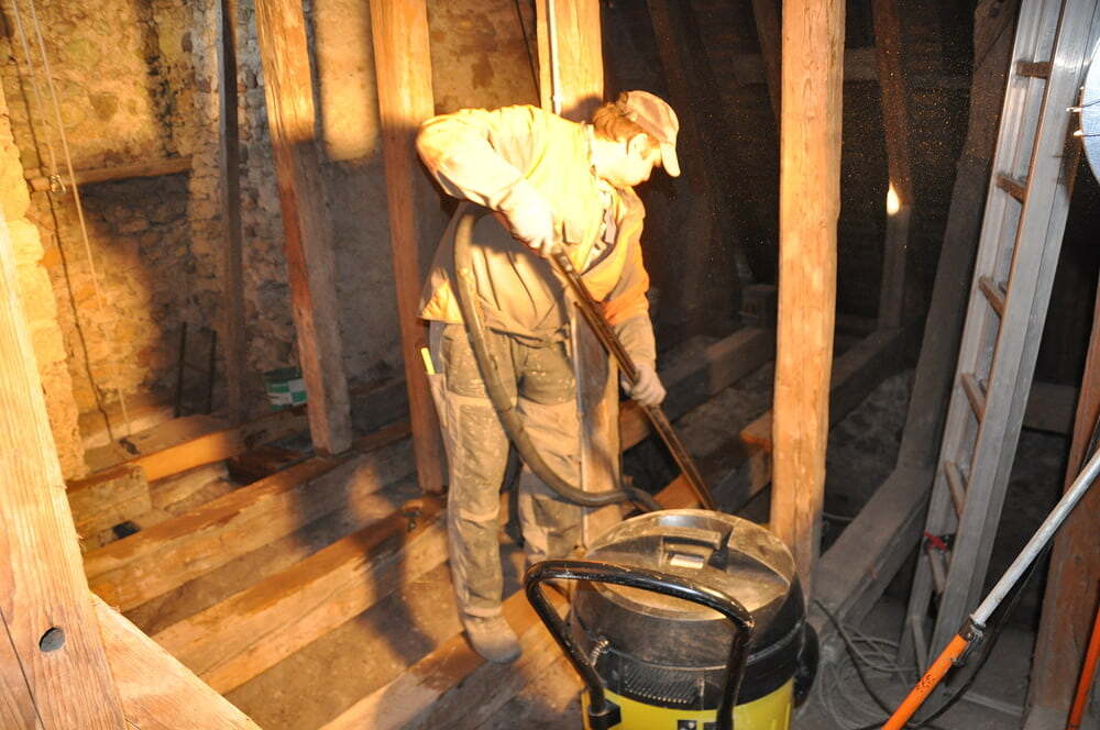Im Laufe der Jahrzehnte sammelten sich durch verschiedene Kirchenumbauten im Turm, Dach und Dachstuhlbereich eine Menge Bauschutt, Holzabfälle und Schrott an. Diese Schuttmengen waren zum größten Teil über die gesamten Kirchengewölbe verstreut.