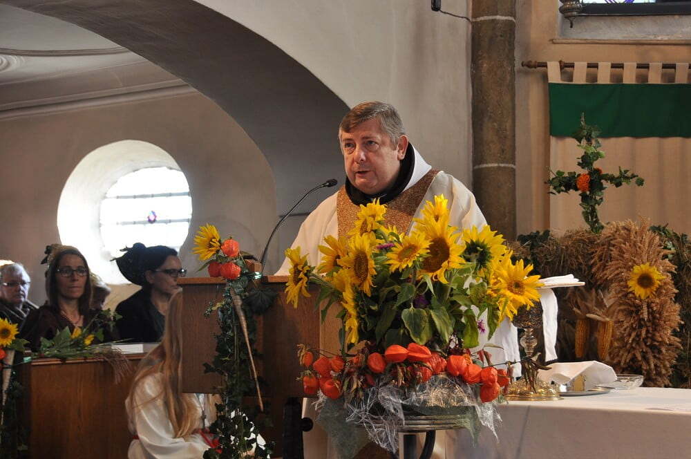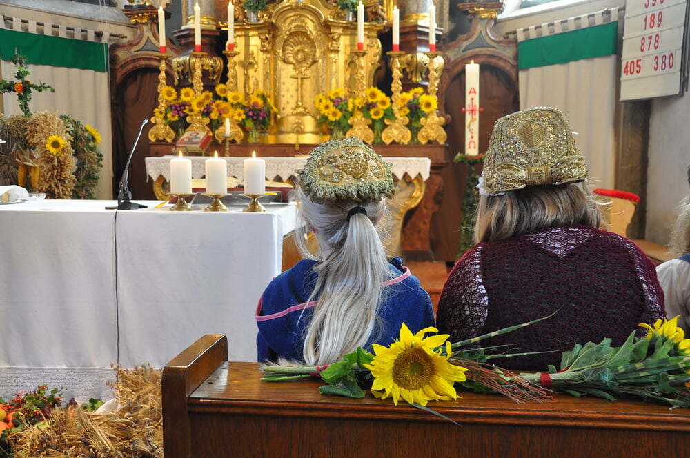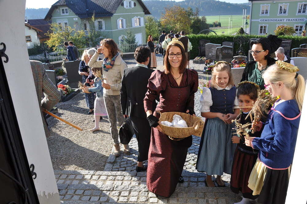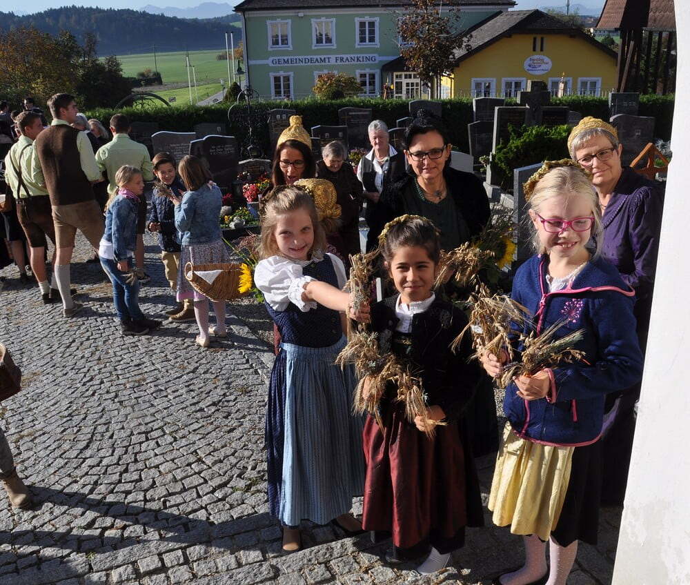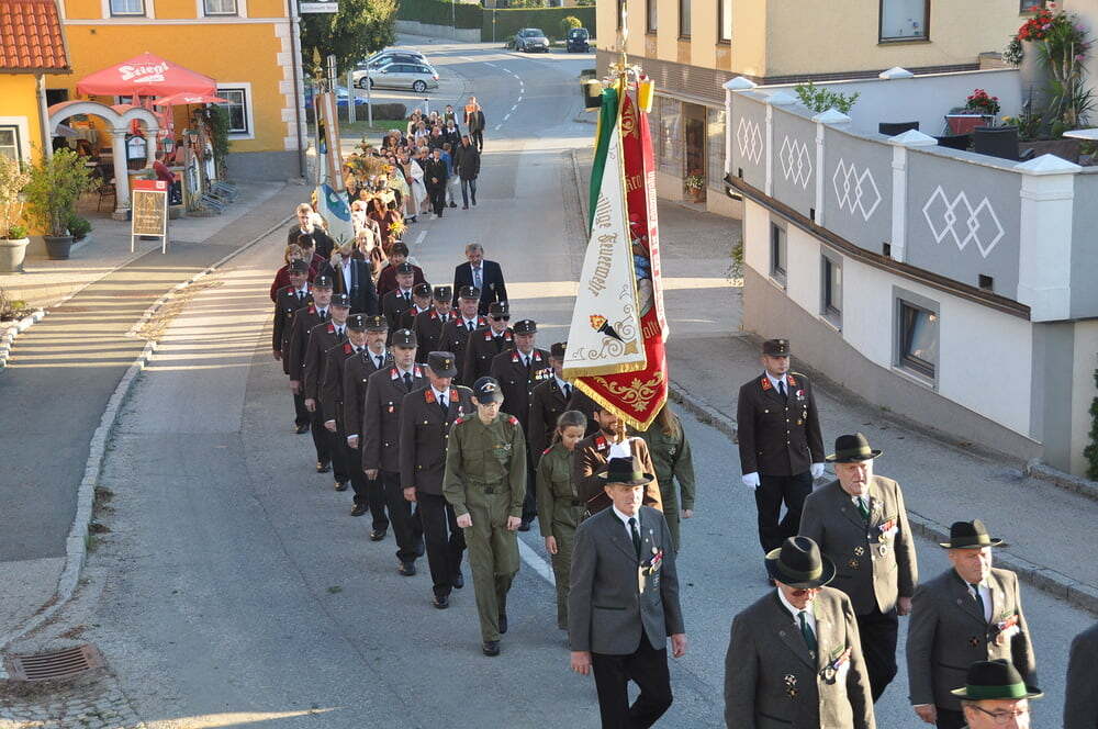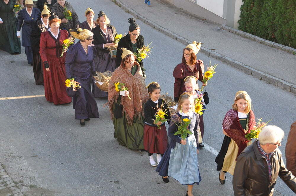 ihren Helferinnen für den wunderbaren Kirchenschmuck, bei der Ministrantin, bei der Landjugend für die Herstellung der prächtigen Erntekrone, bei der Musikkapelle und den Vereinen und nicht zuletzt für die Kollekte.