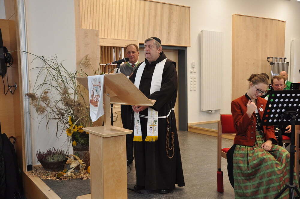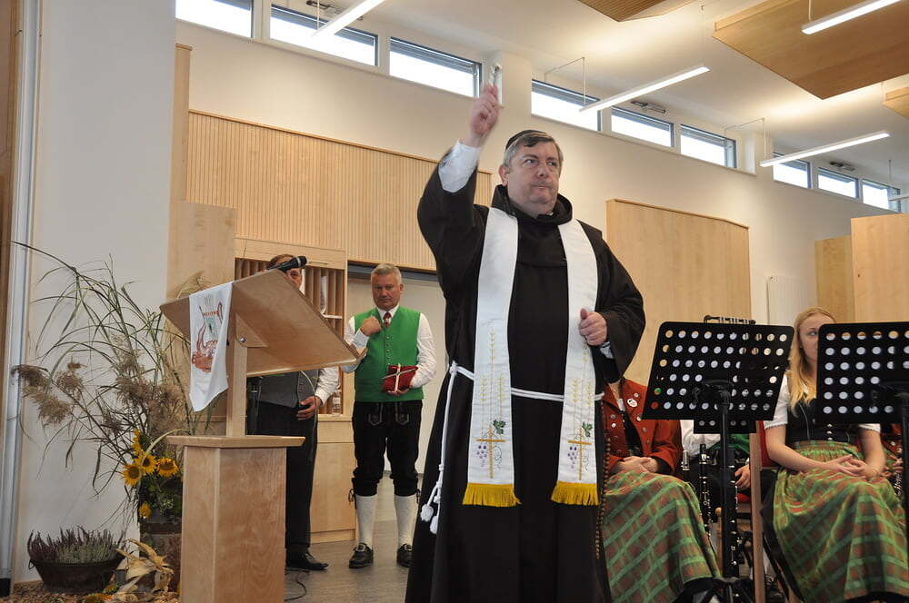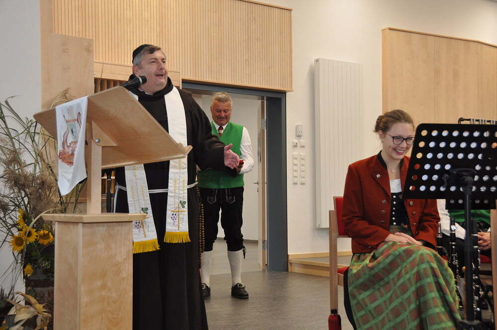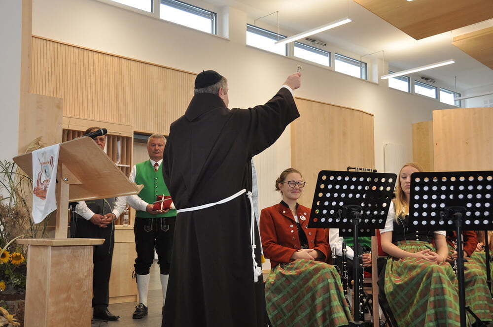 Der gelungene Anbau von Proberaum mit Nebenräume bei der Volksschule wurde von unserem Pfarrer Pater Georg OFM feierlich gesegnet.