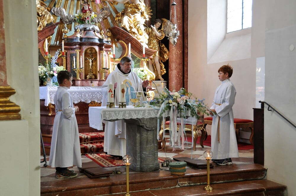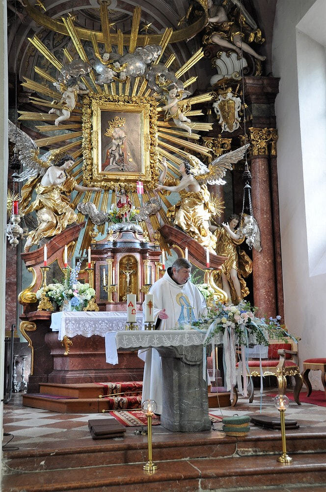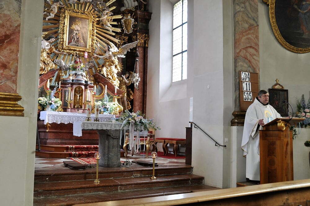 Es trafen sich 32 WallfahrerInnen vor der Pfarrkirche, die mit dem Segen, gespendet von unserem Pater Georg OFM, um 6 Uhr auf den Weg entlassen wurden. Die Pilgerstrecke von ca. 15 km war in gut 3 Stunden geschafft. P. Georg hielt den anschließenden Gottesdienst in der Wallfahrtskirche für Wallfahrer und Messebesucher.
