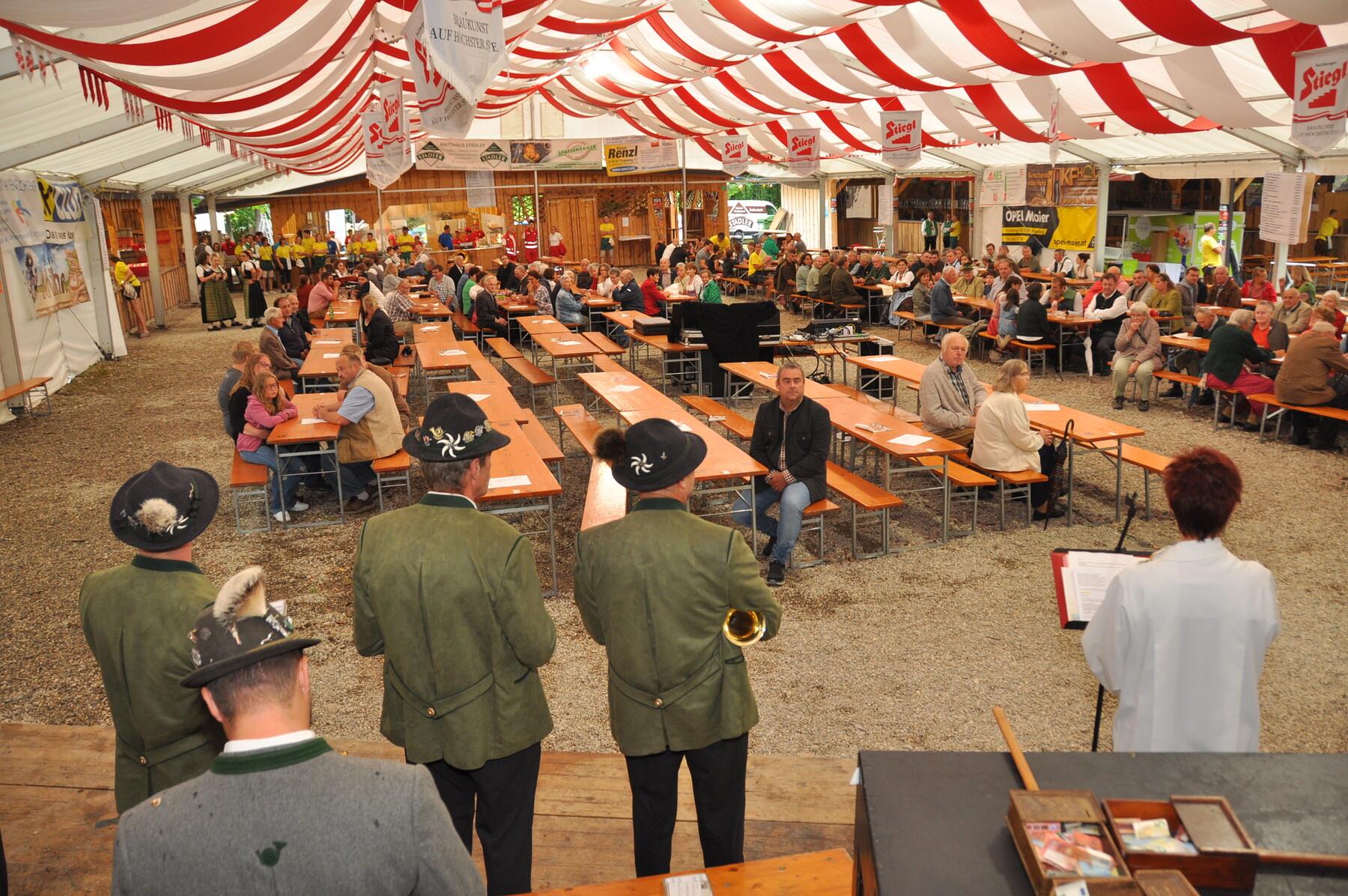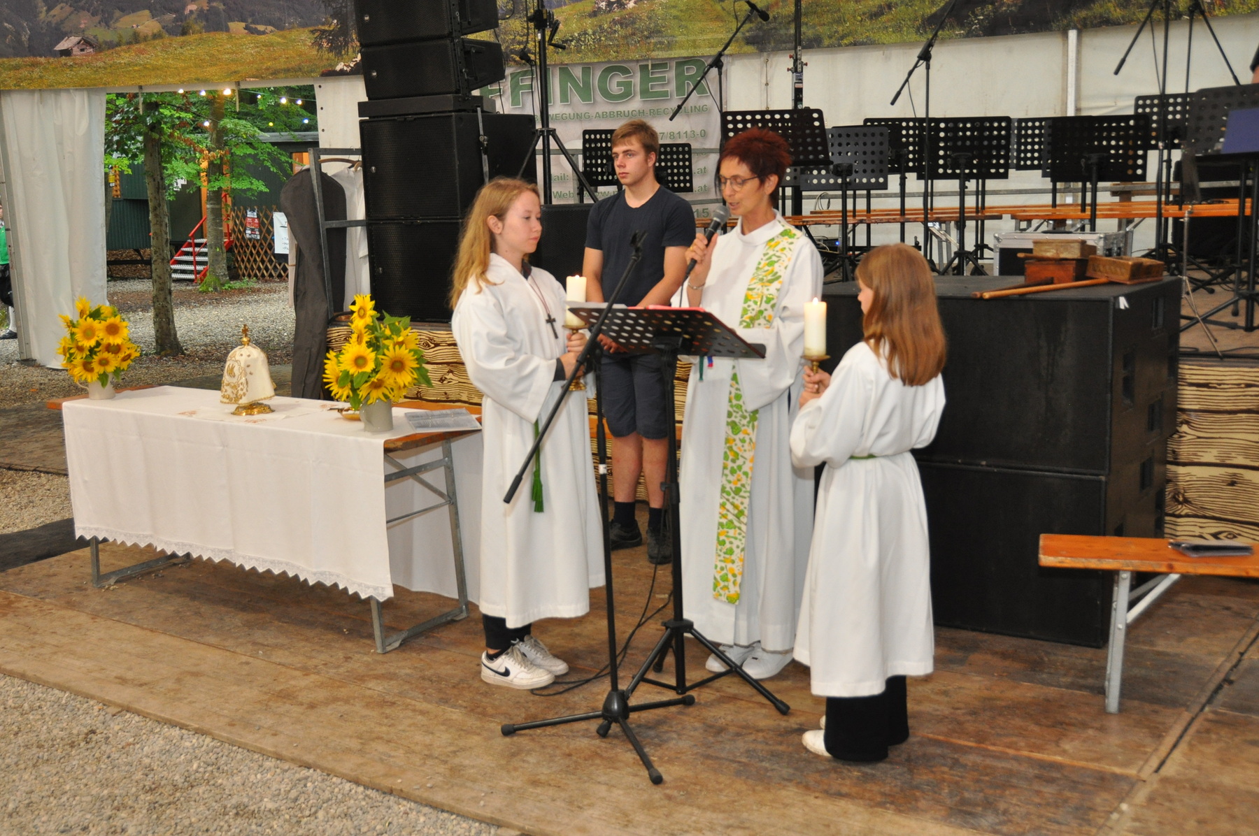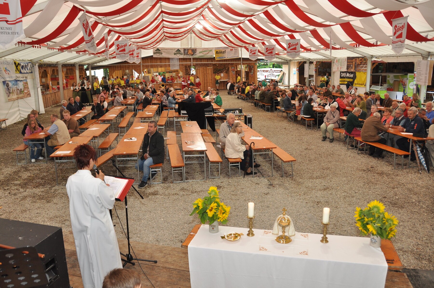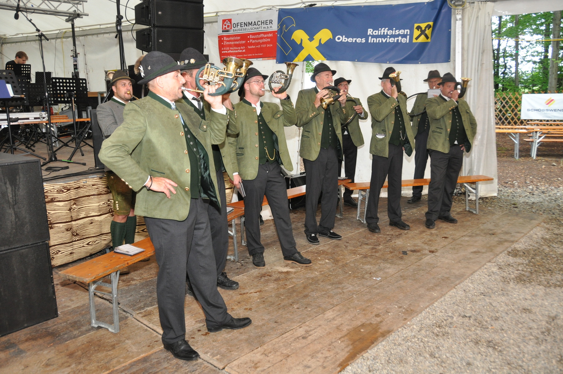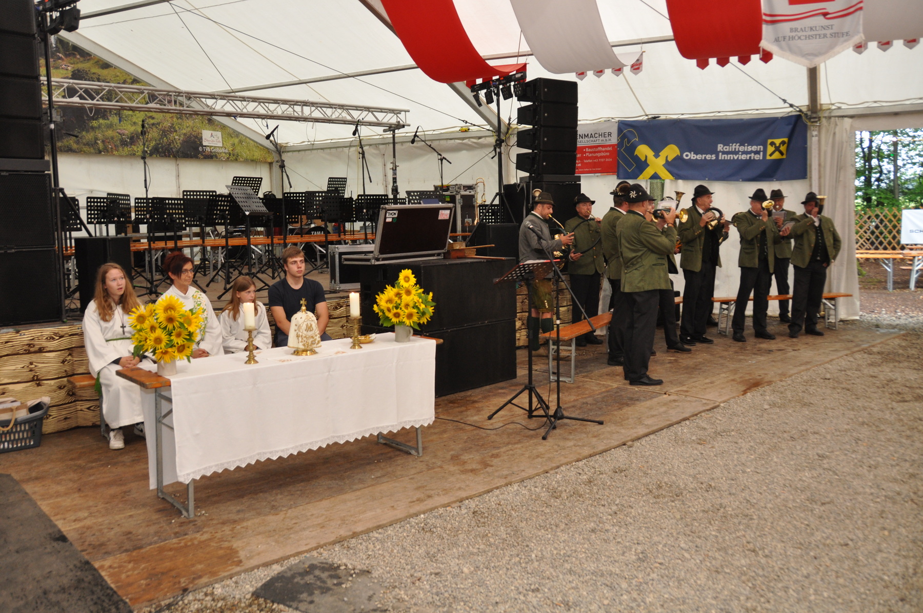 Heuer leider war die Wetterlage unsicher, somit wurde die Messe im Festzelt in Begleitung der Weilharter Jagdhornbläser abgehalten.