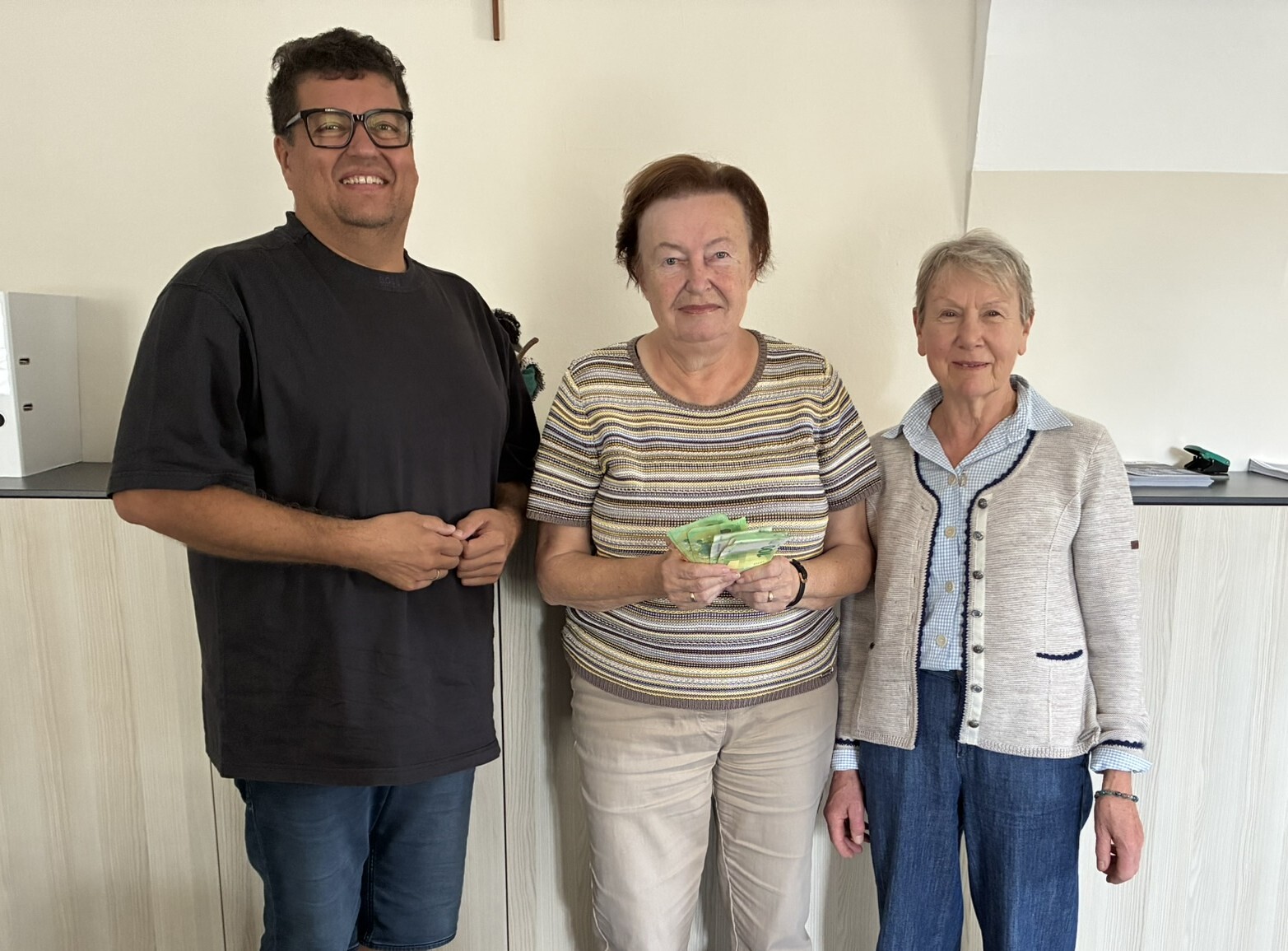 Seelsorger Roland Altreiter dankt dem Team nicht nur für die großzügige Spende, sondern auch für die regelmäßige Organisation des Seniorentreffs.
