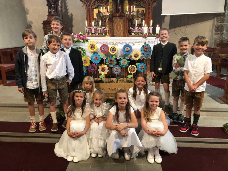 Unter diesem Motto feierten 20 Kinder am 18. Mai 2025 ihre Erstkommunion. Mit tollen Liedern und von den Kindern gelesenen Texten wurde die Feier von Karin & Martin Rögner gut vorbereitet und gestaltet. Pfarrkooperator Marian Tatura feierte die Eucharistie, Pfarrseelsorger Martin Rögner, auch Religionslehrer der Kinder, fand schöne Gedanken zur Predigt.