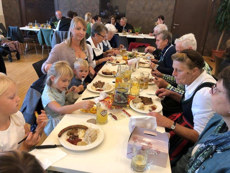 Nach Ende des Gottesdienstes, der von der Landjugend mitgestaltet wurde, wartete schon wieder die Trachtenmusikkapelle am Kirchenplatz, um die Feiergemeinschaft zum Abelenzium zu begleiten, wo die Bauernschaft schon mit ihren Köstlichkeiten wartete. Es gab Kotelette, Grillwürstel, Pommes, Getränke, Kaffee und Kuchen – für jeden etwas dabei. Und da sich inzwischen auch die Sonne immer wieder blicken ließ, war nicht nur der Saal im Abelenzium, sondern auch der Vorplatz mit Gästen voll. Die TMK Gaflenz spielte einen Frühschoppen und so wurde gemütlich bis in die Nachmittagsstunden weitergefeiert.