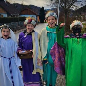 Die Sternsinger:innen bringen die weihnachtliche Botschaft in die Häuser und bitten um eine Spende für Menschen in armen Gegenden der Welt. Sie freuen sich, wenn sie freundlich aufgenommen werden.