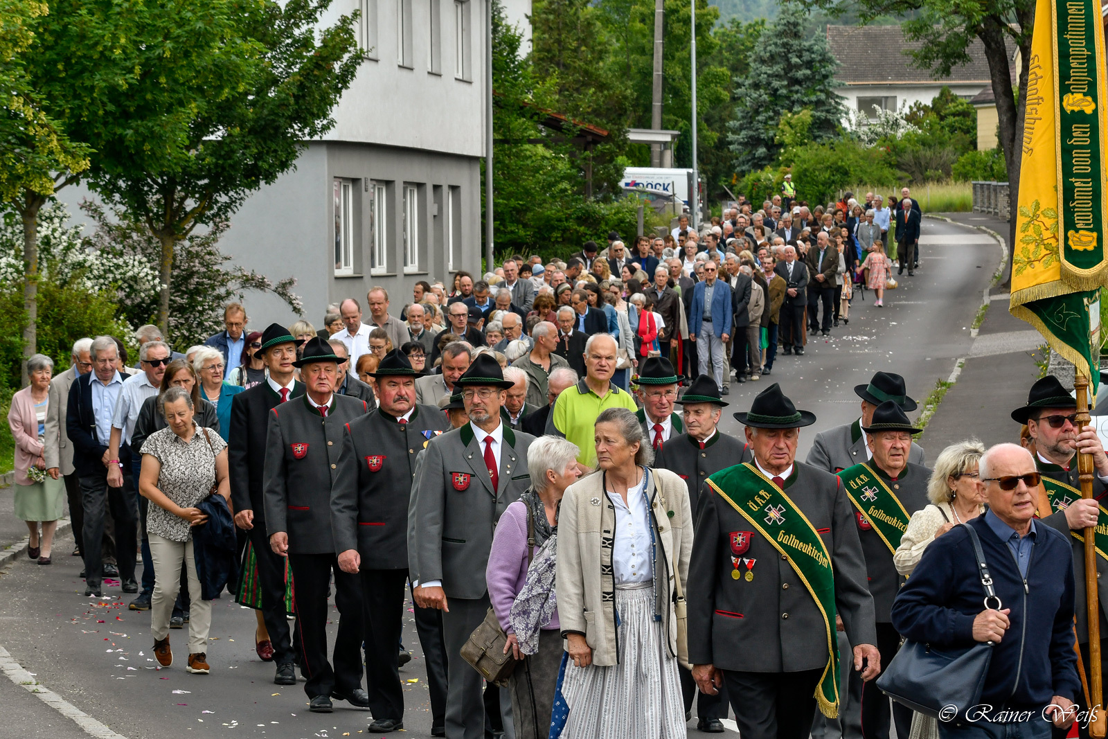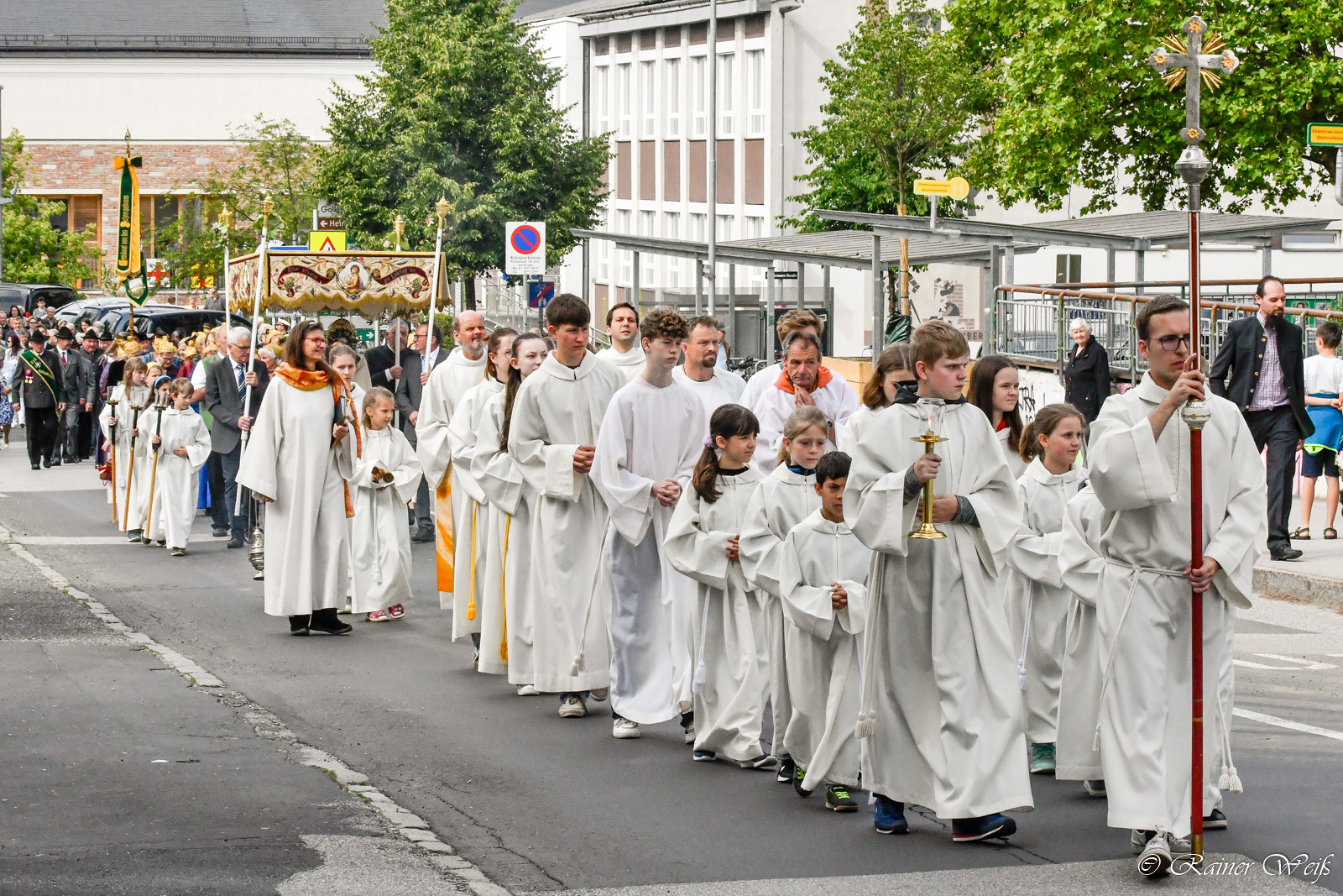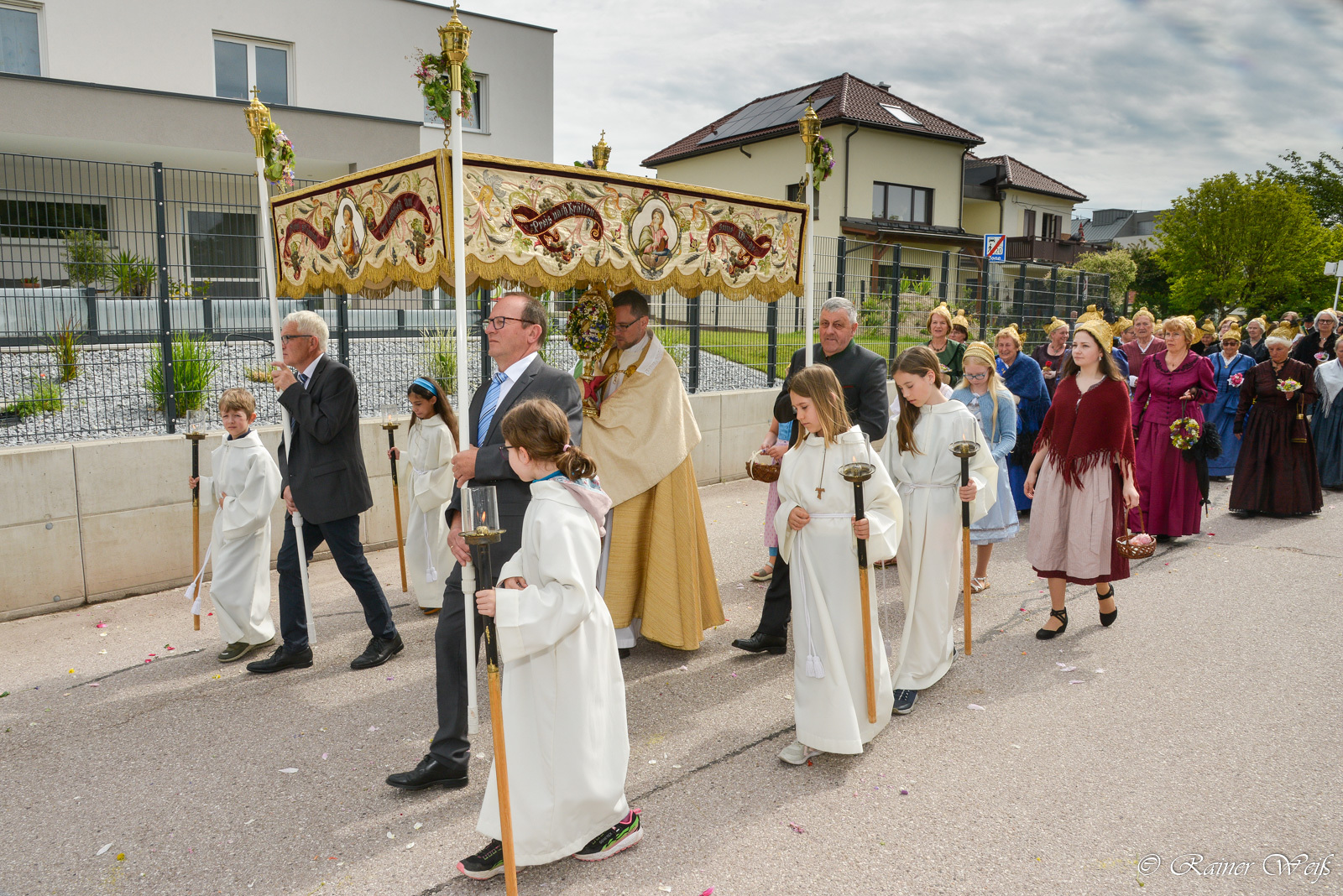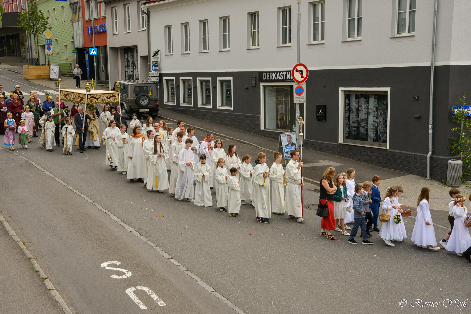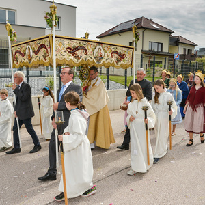 Zur ungewöhnlichen Zeit um 08:30 Uhr wurde zunächst das Hochamt in der Kirche gefeiert. Danach ging es mit der alljährlichen Fronleichnamsprozession weiter. Bei dem 1. Altar feierten die Erstkommuninkinder sowie die Kindergartenkinder fleißig mit. Auch wenn das Wetter etwas kühler war, hielt es durch und Nass wurde somit keiner!