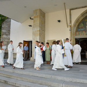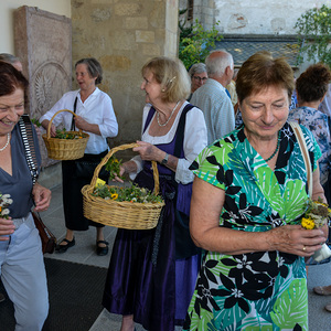 Sie gestalteten den Gottesdienst mit ihren Texten und der engagierten Bläsergruppe und verteilten im Anschluss die am Tag zuvor gebundenen und im Gottesdienst geweihten Kräuterbüscherl.