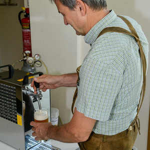 Und natürlich gab es einen Pfarrkaffee, bei dem die Pfarrbevölkerung nicht nur Kaffee und tolle Mehlspeisen erwerben konnte, sondern neben Frankfurter Würstel diesmal sogar selbstgebrautes Bier zum Kauf angeboten wurde.