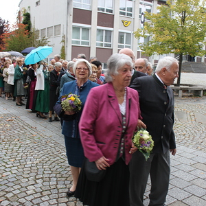 1 Eisernes 11 Diamantene, 16 Goldene und 9 Silberne Hochzeitspaare feierten am 13.Okt. im Rahmen des 10.00 Gottesdienstes mit Benjamin Hainbuchner, Pater Hrouda und Christian Koblmüller ihr Jubiläum. Musikalisch umrahmt wurde der Festgottesdienst vom Kirchenchor.