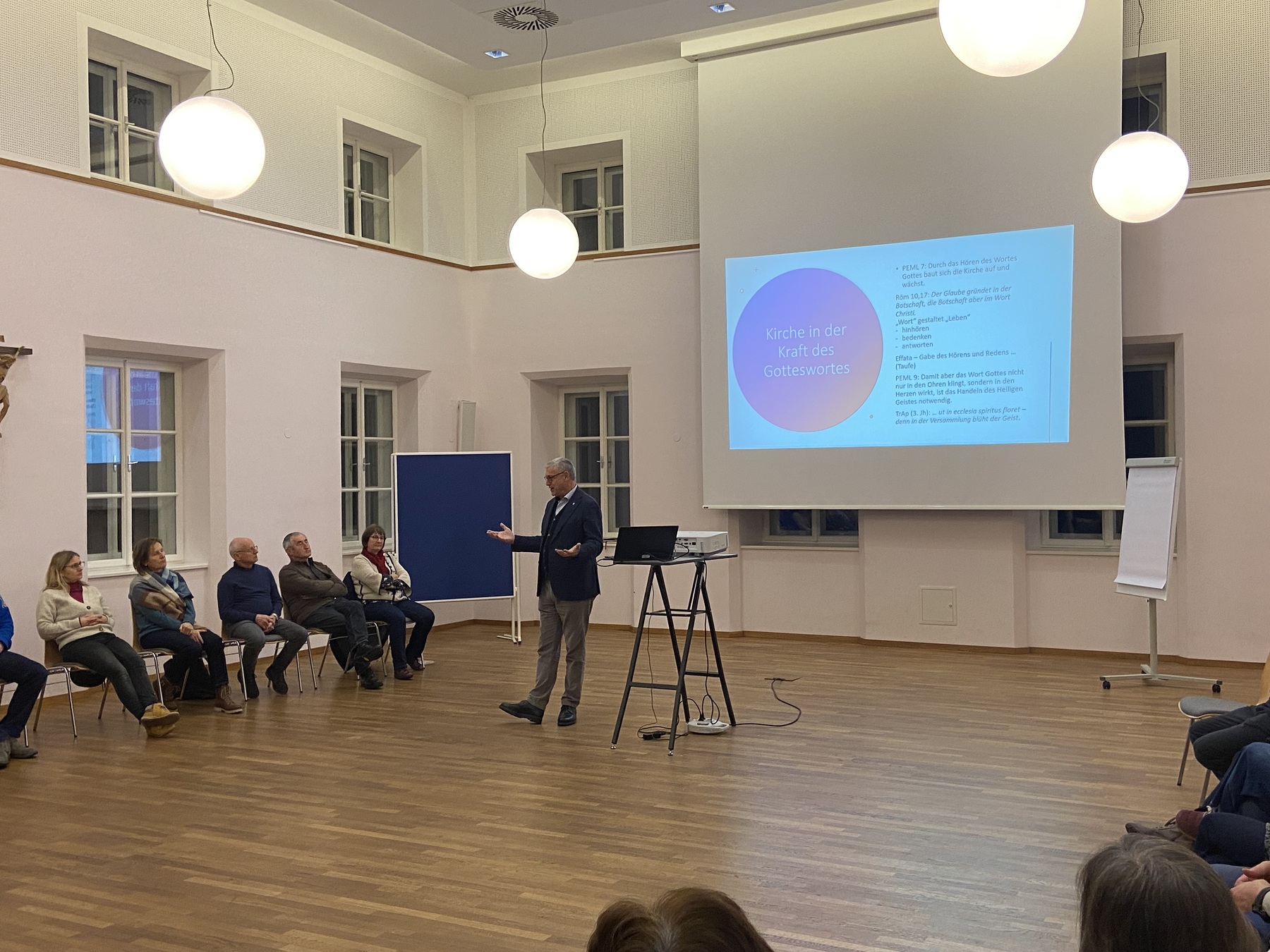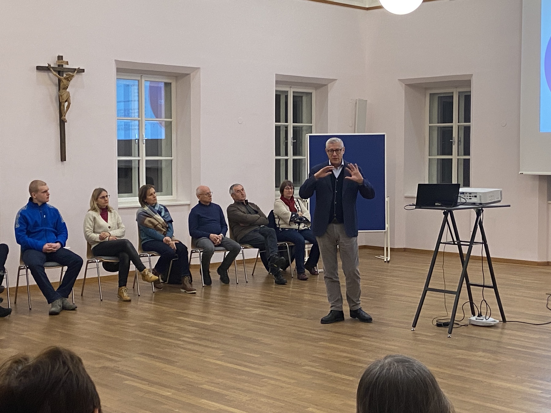 Unter dem Titel „Christus unter uns – das Verständnis der Wort-Gottes-Feier vertiefen“ gestaltete Univ. Prof. Pater Ewald Volgger am Dienstag, den 14. Jänner 2025 einen interessanten Abend, an dem ca. 30 Personen teilnahmen. Dabei vertieften sich die teilnehmenden Personen mit der Geschichte, dem Aufbau und dem Verständnis der Wort-Gottes-Feier. Zum Abschluss feierten alle Beteiligten gemeinsam mit Prof. Volgger eine Wort-Gottes-Feier in der Kirche.